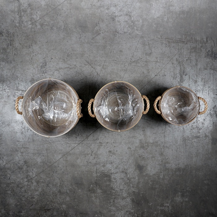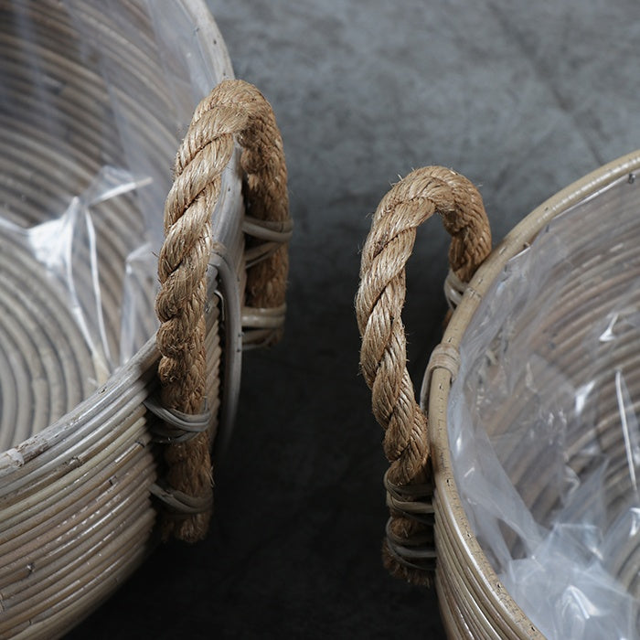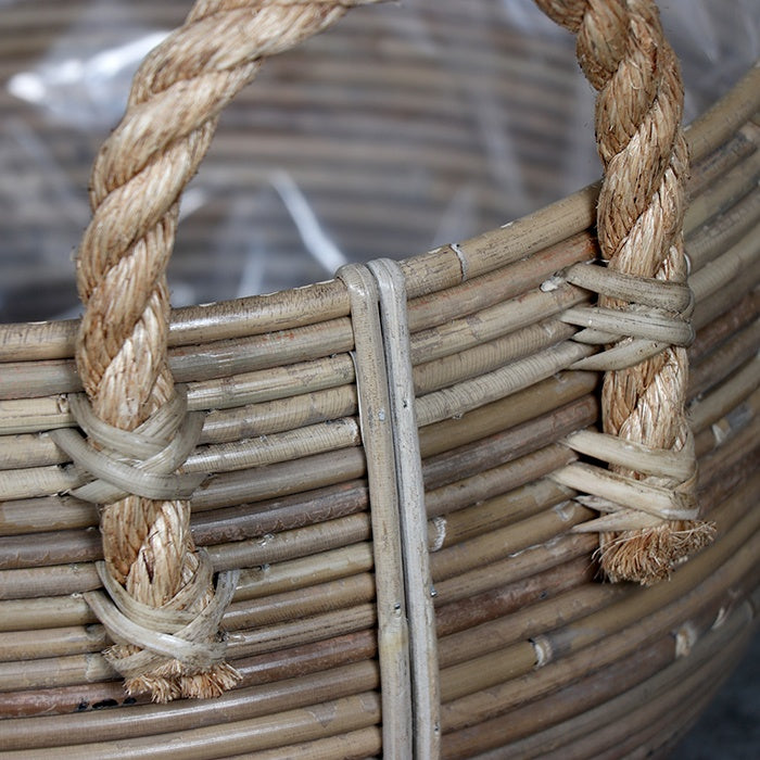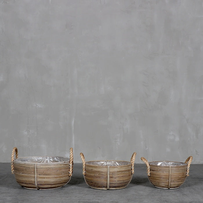 Canasto triple de ratán tejido.