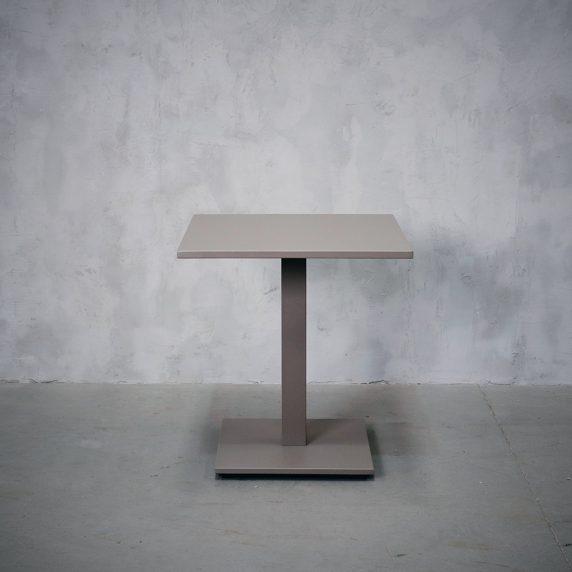 Mesa fabrica en aluminio electropintado color taupe.