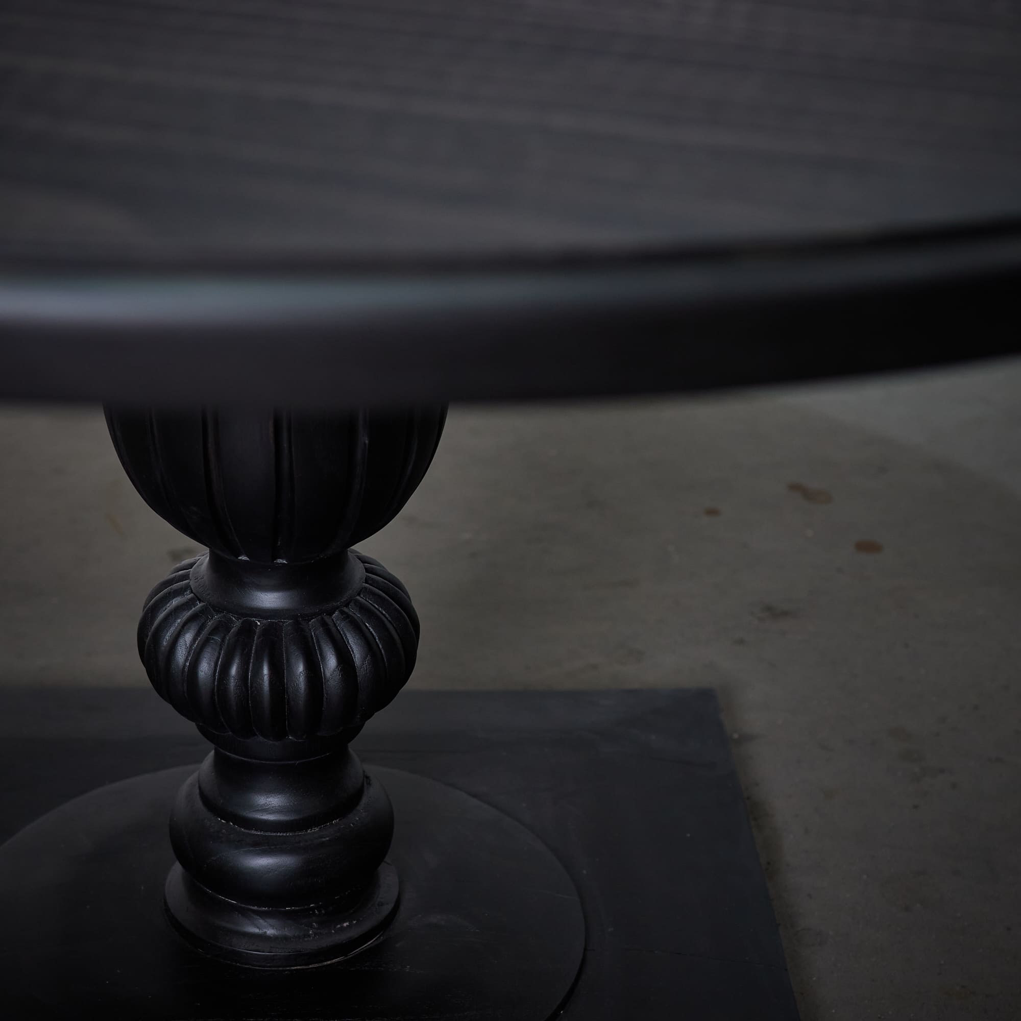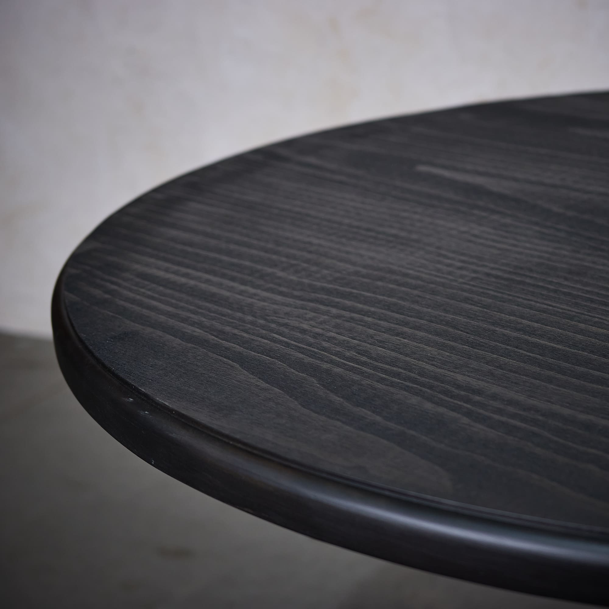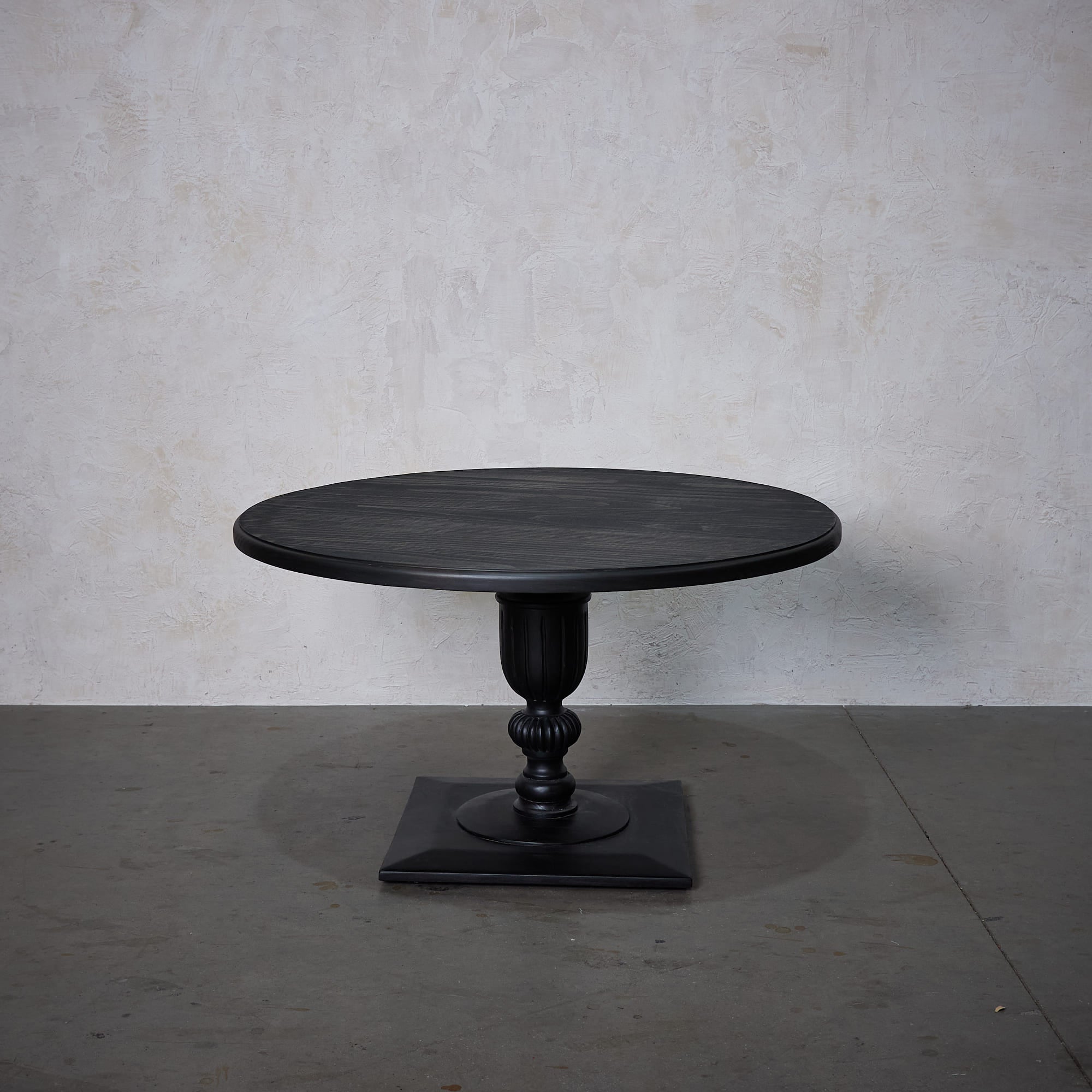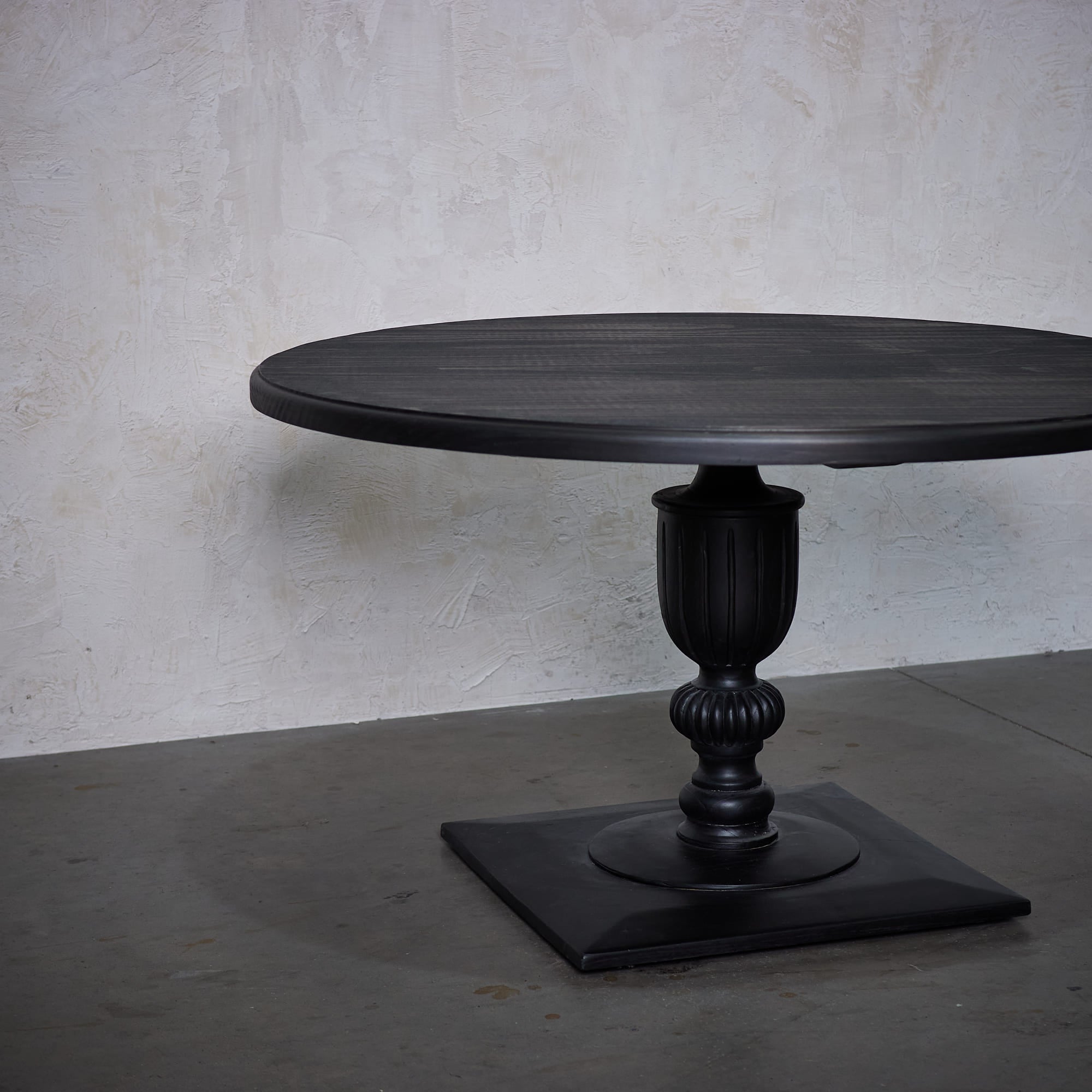 Mesa fabricada en Madera de Pino en terminación negra desgastada.