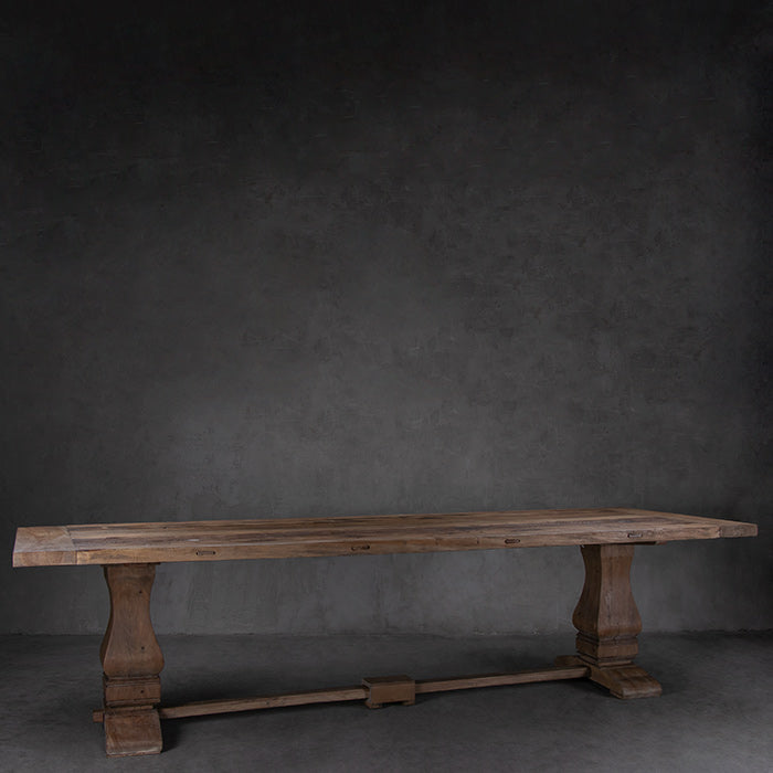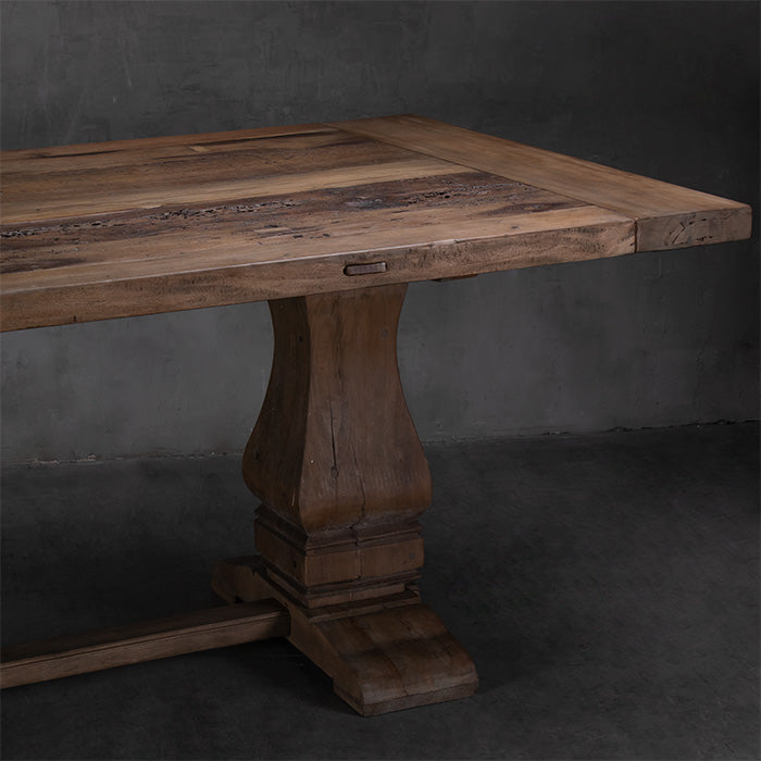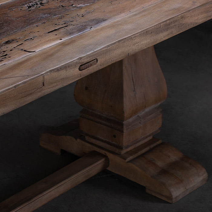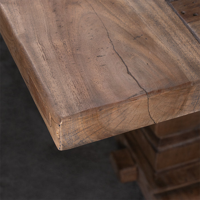 Esta mesa de comedor es de esas que llegan y se hacen querer al tiro: madera honesta de teca reciclada y una cubierta amplia, prolija y cálida al tacto.