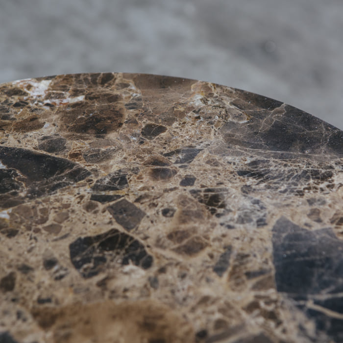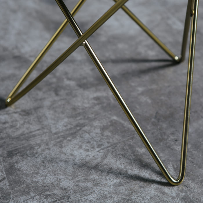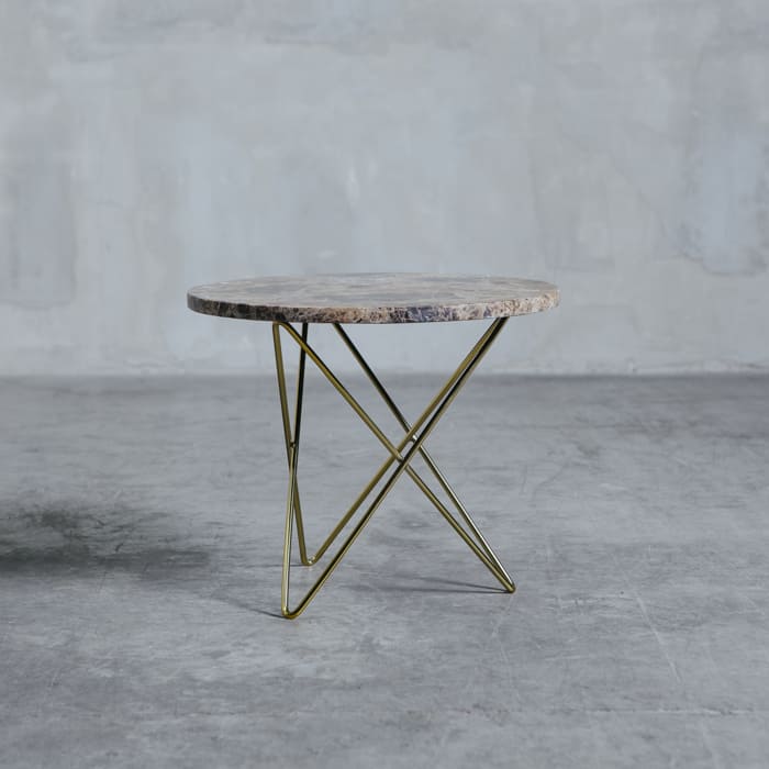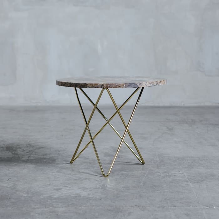 Mesa de centro moderna. Cubierta de mármol café y estructura en fierro color dorado. Diseño y combinación que quedará perfecta en cualquier espacio