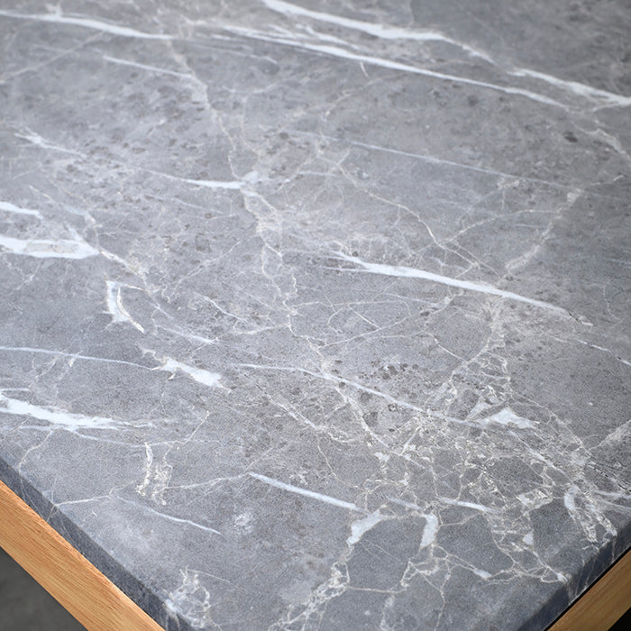 Diseño moderno y materiales duraderos. Su cubierta en aglomerado forrado en resina ofrece una apariencia elegante, mientras que las patas de roble macizo aportan calidez, estabilidad y un toque natural. Ideal para espacios contemporáneos que buscan estilo y funcionalidad.
