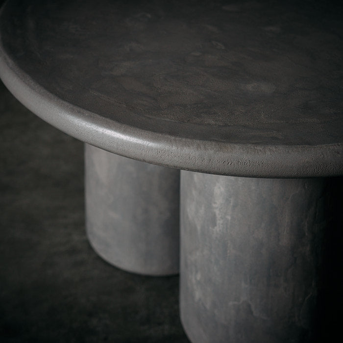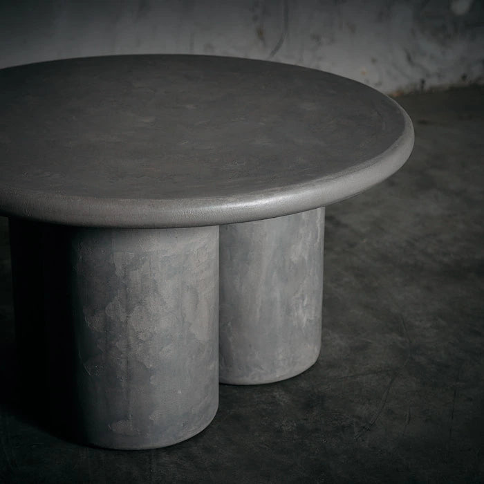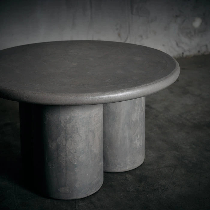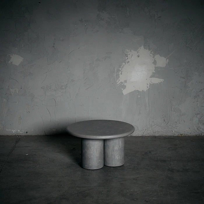 Mesa de centro  elaborada en madera aglomerada forrada en microcemento. Su acabado monolítico y textura mineral aportan carácter y sobriedad, mientras su base cilíndrica triple equilibra solidez y elegancia en una pieza ideal para espacios contemporáneos.   Medidas: 60 x 33 cm ( Diámetro x Alto)   AREA DESIGN trae productos únicos de importación exclusiva, no de fabricación en serie lo cual genera variación entre el producto recibido y la exhibición en tienda o la foto referencial de esta tienda online.