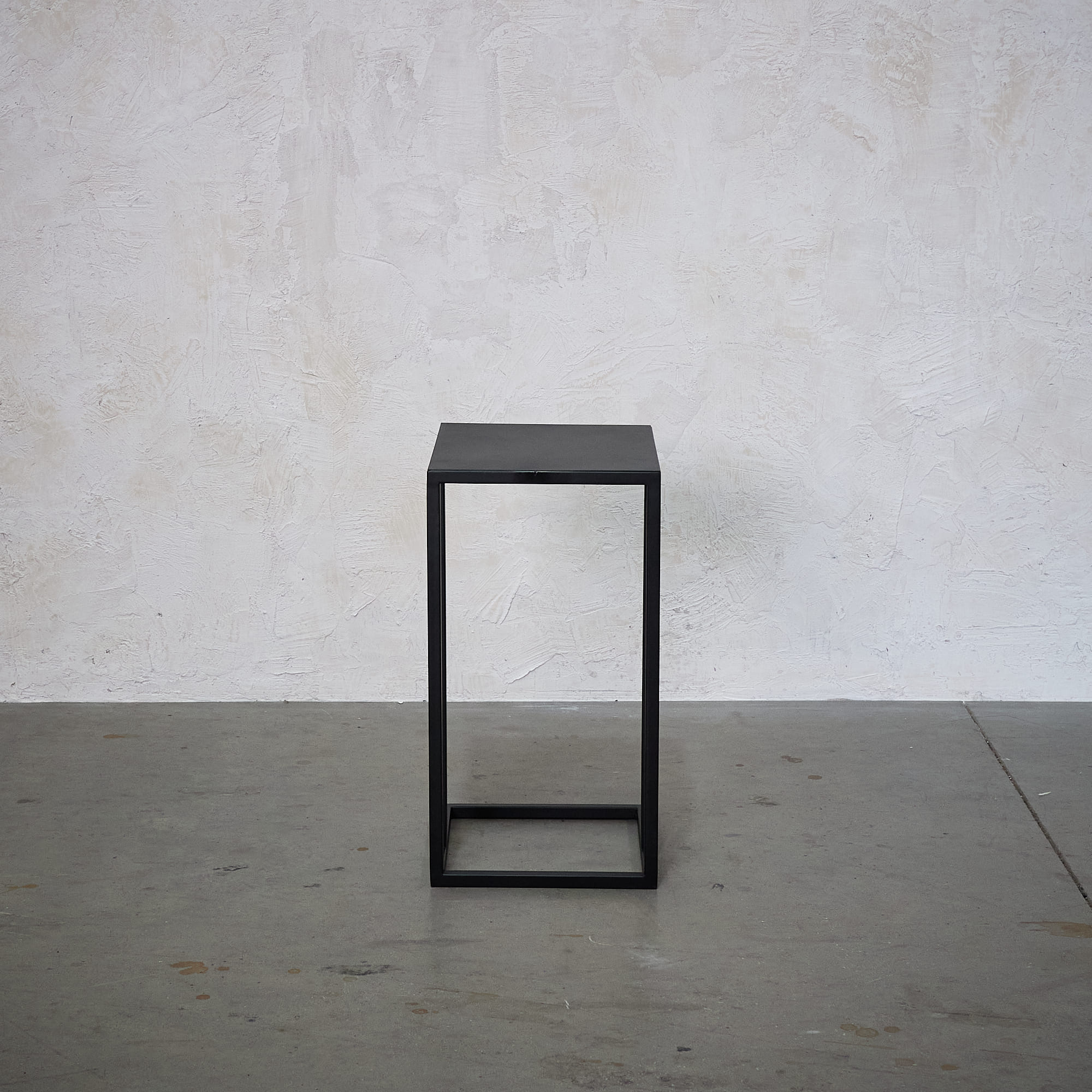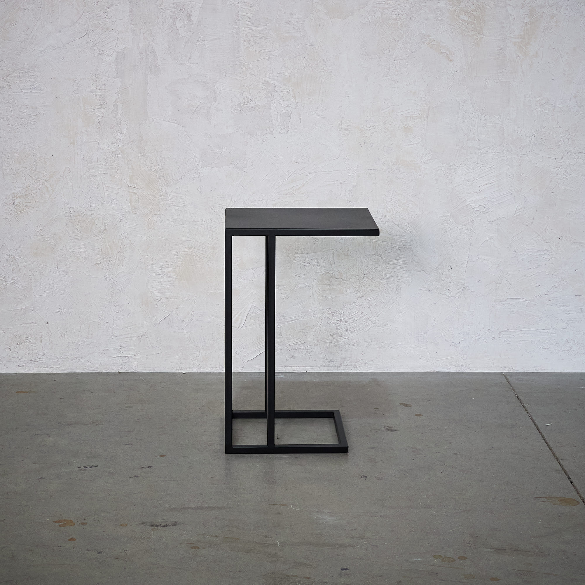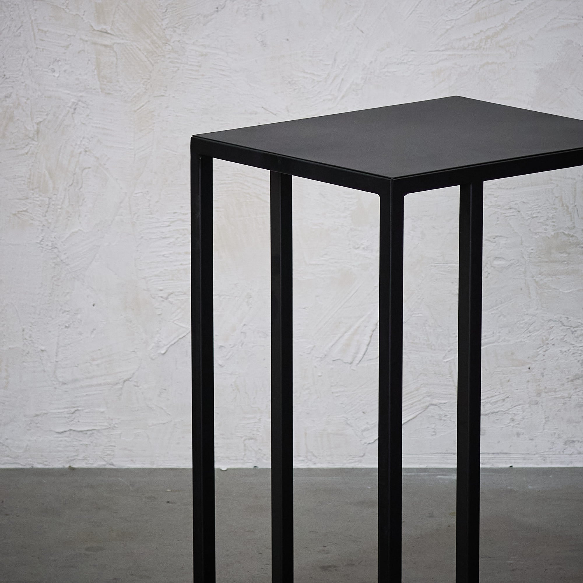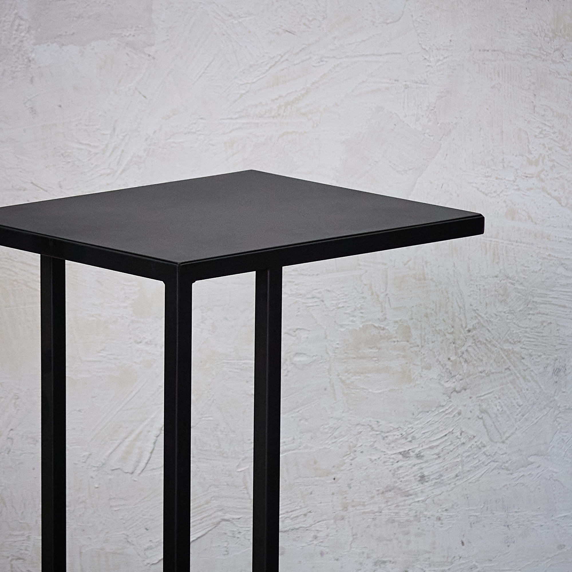 Mesa lateral con cubierta de fierro con terminación negra  y base de fierro negra.   Medidas: 43 x 35 x 65 cm (Largo x Ancho x Alto)