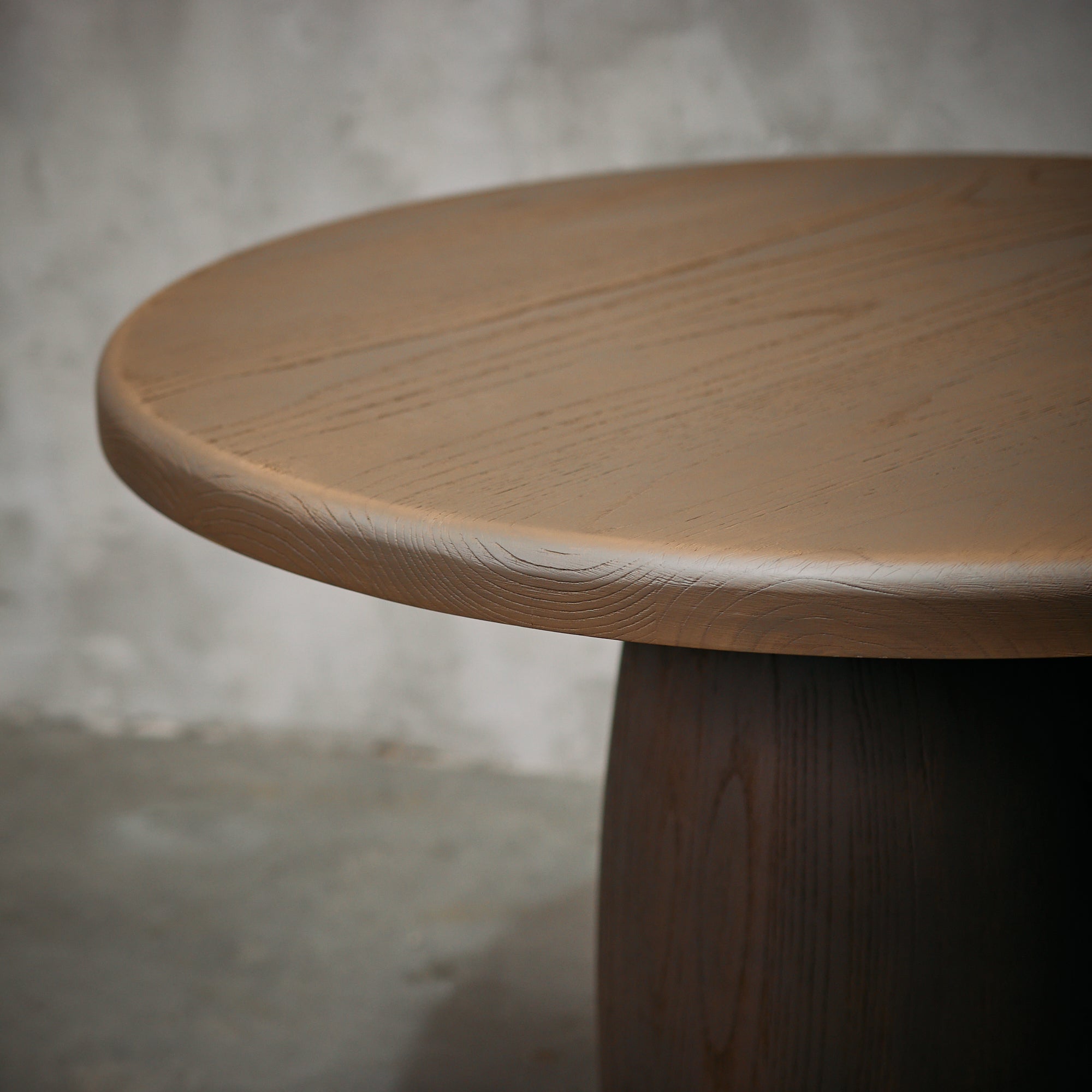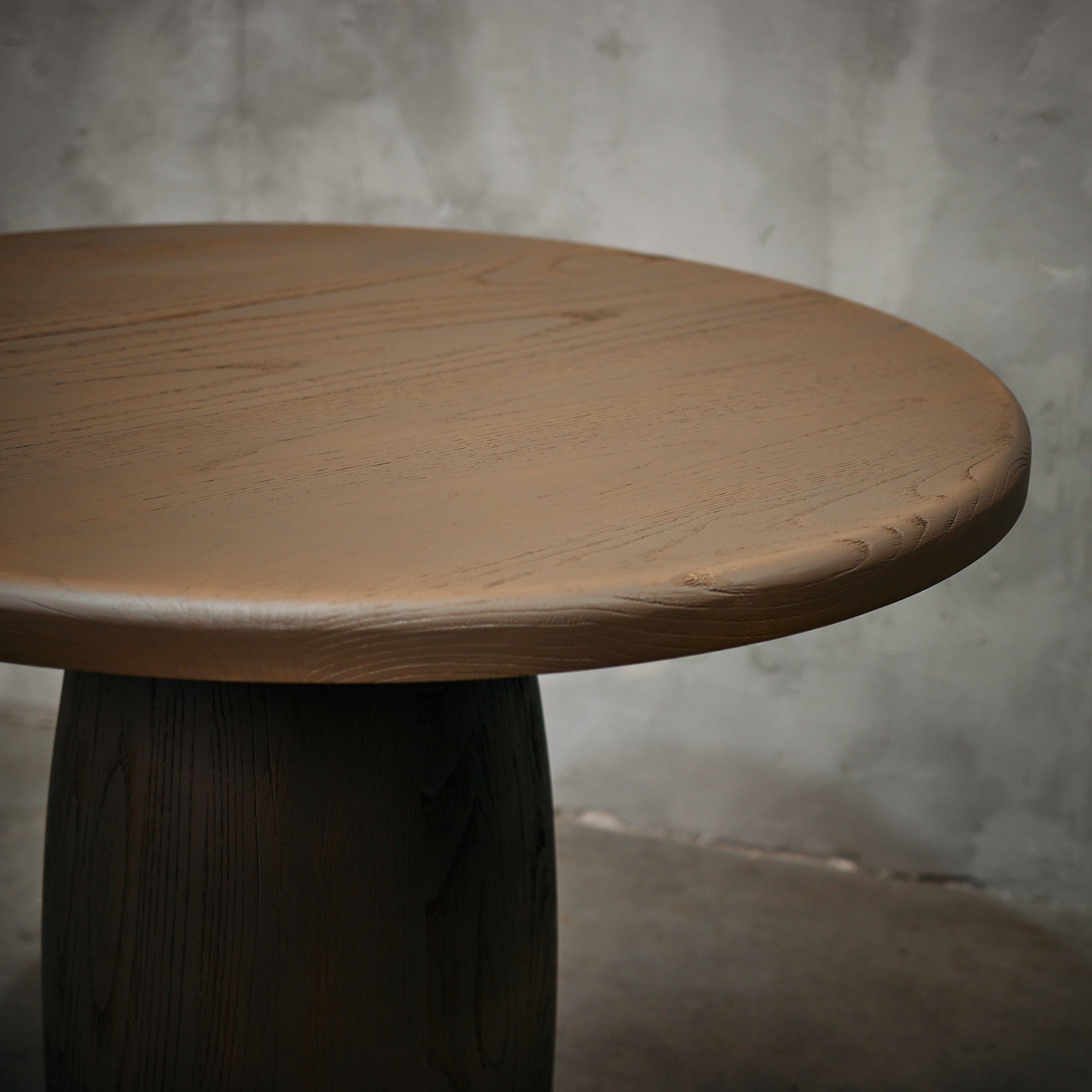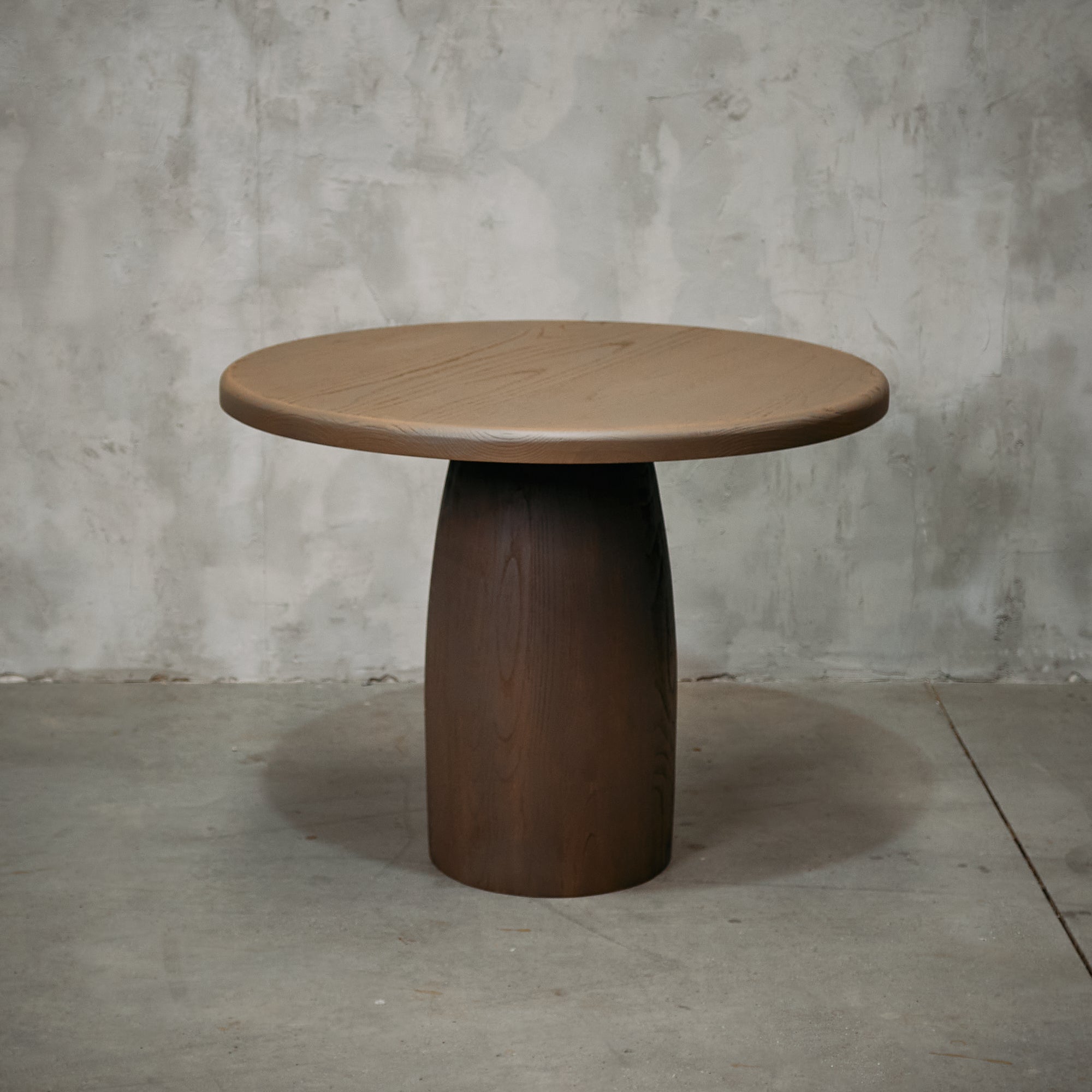 Mesa de comedor fabricada en madera de castaño, terminación Musgo Seco