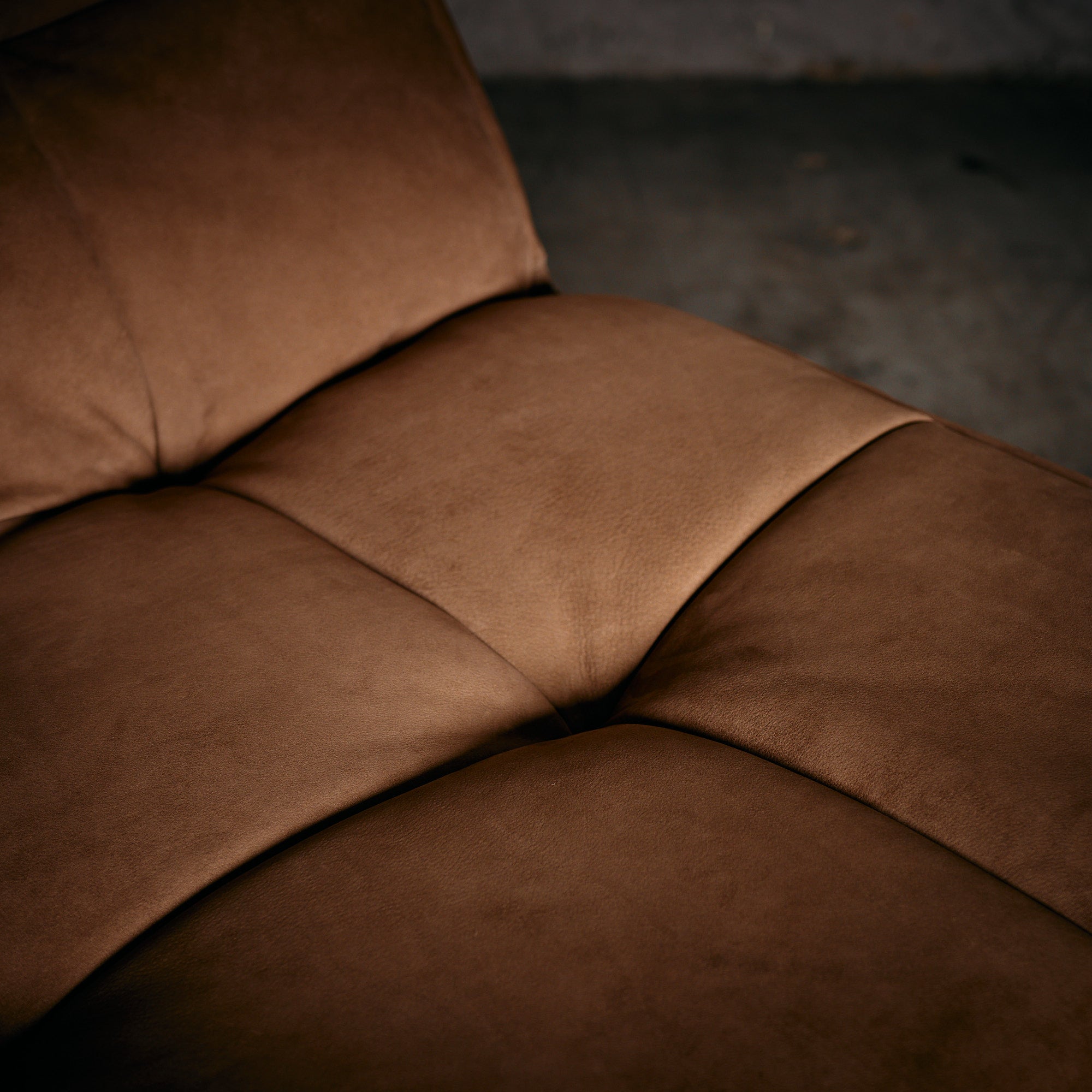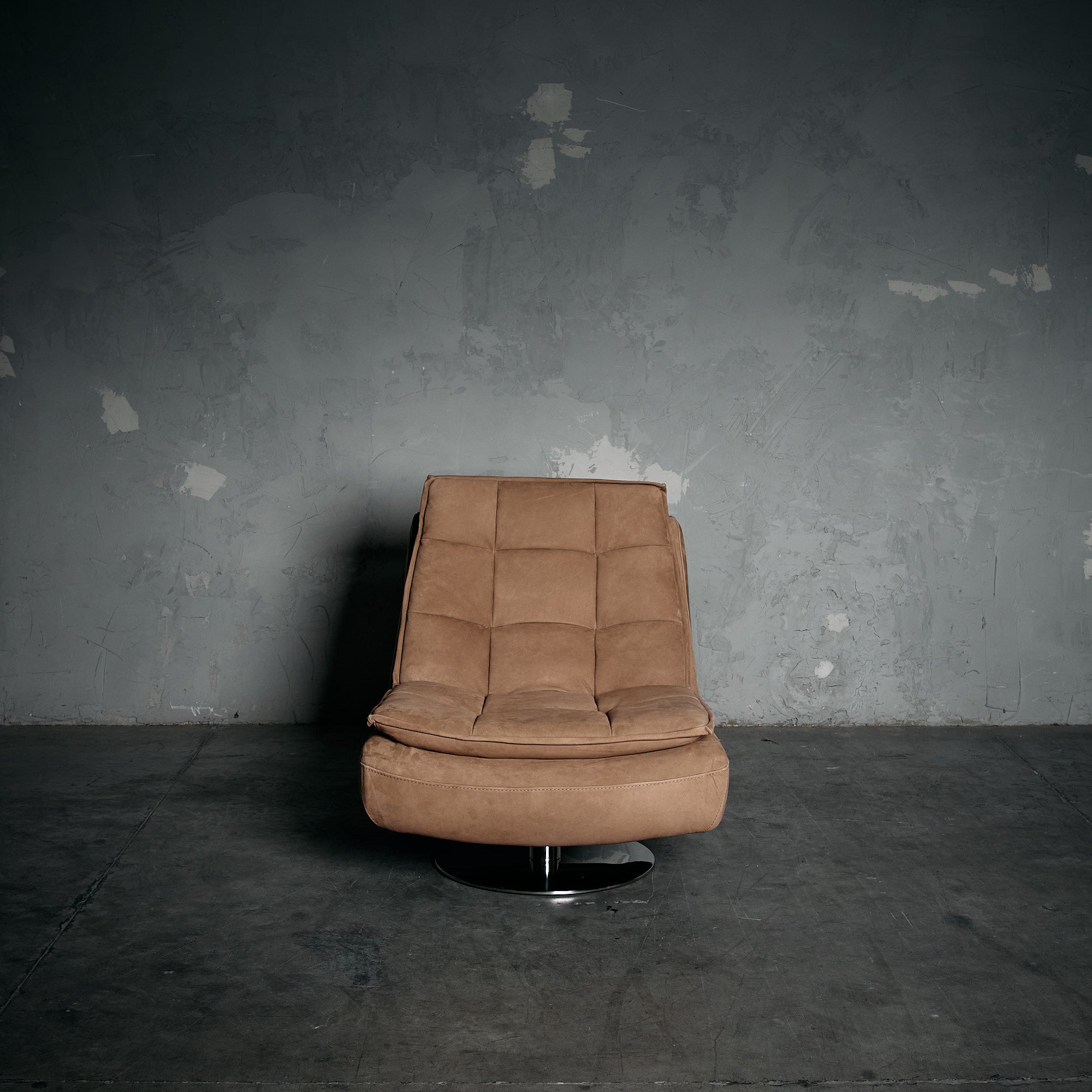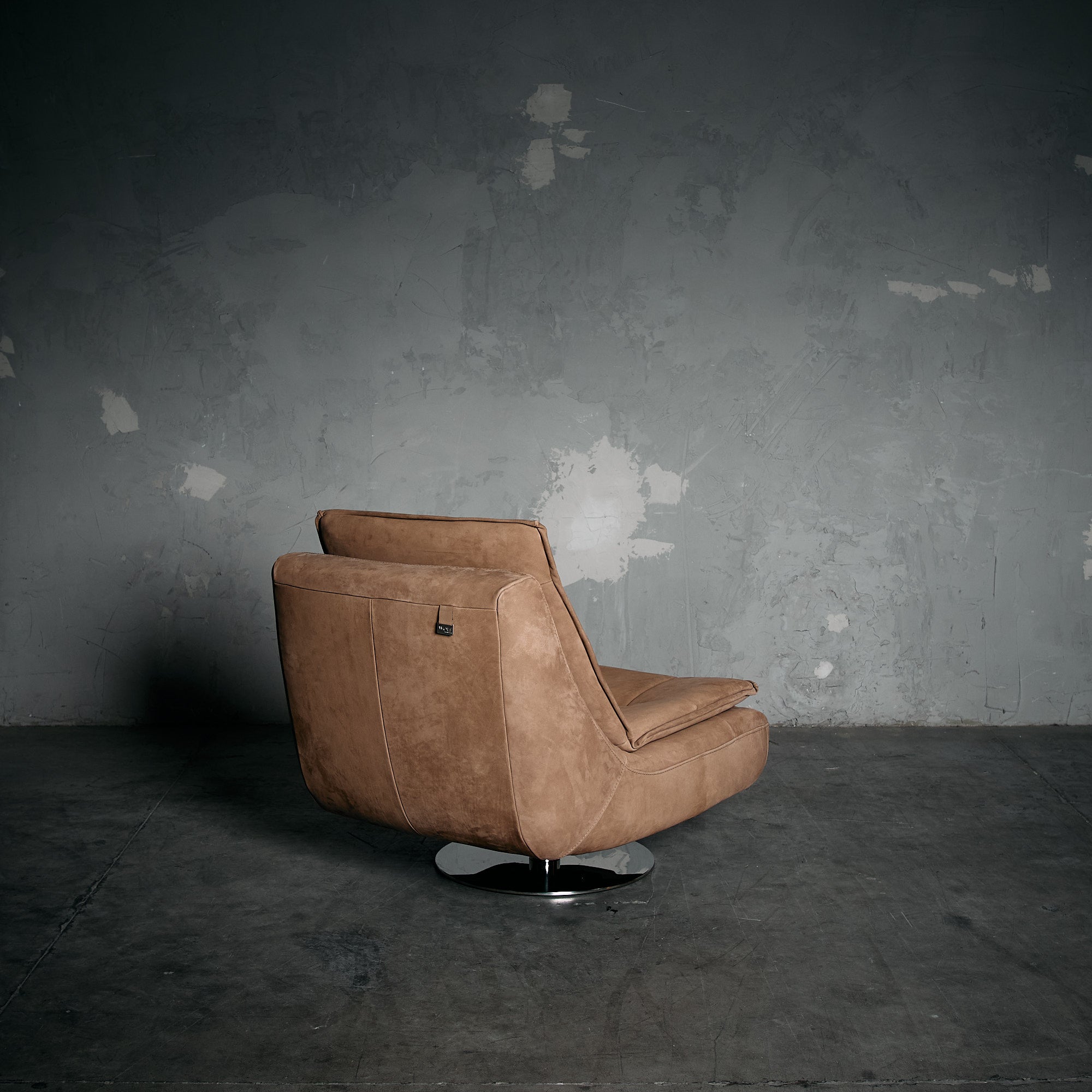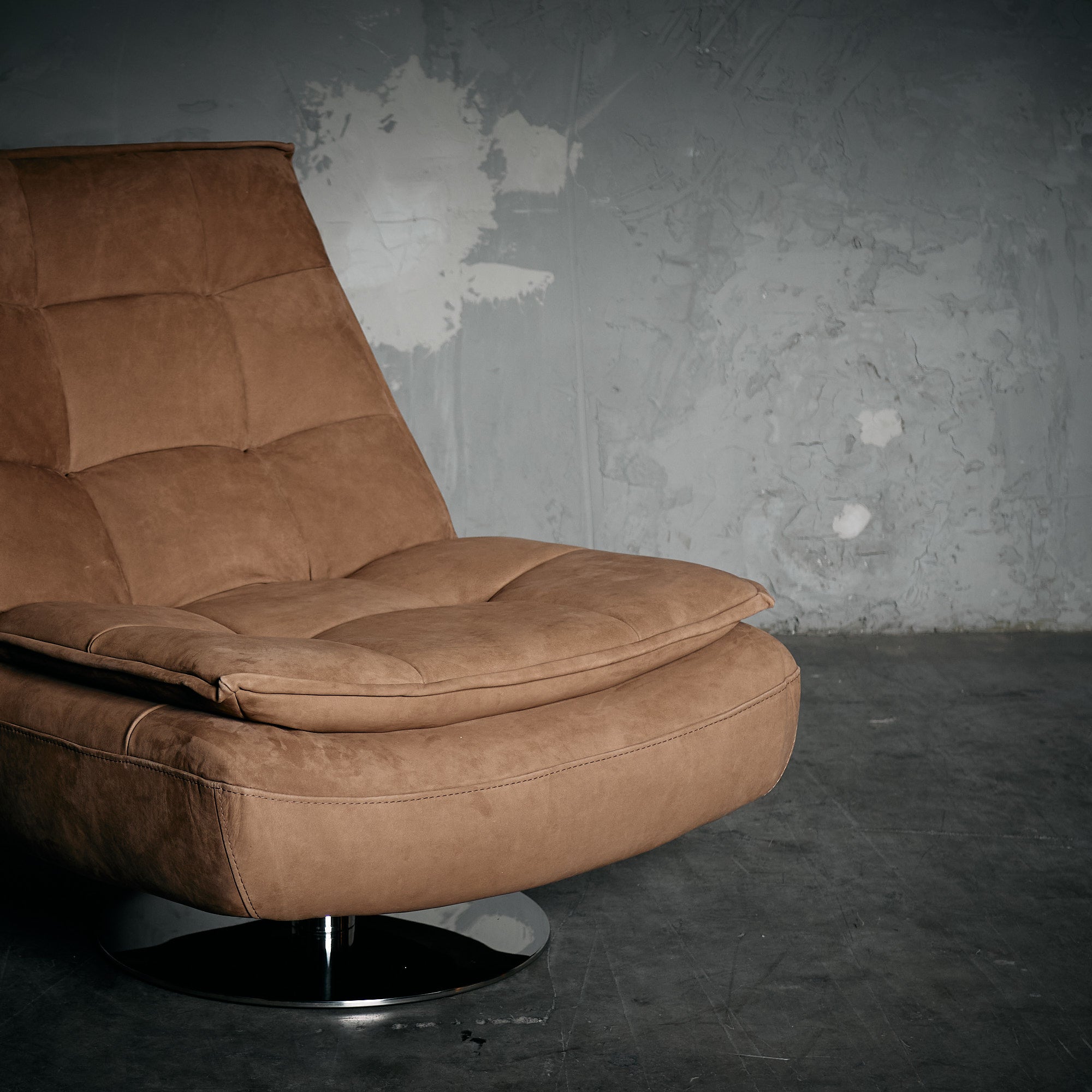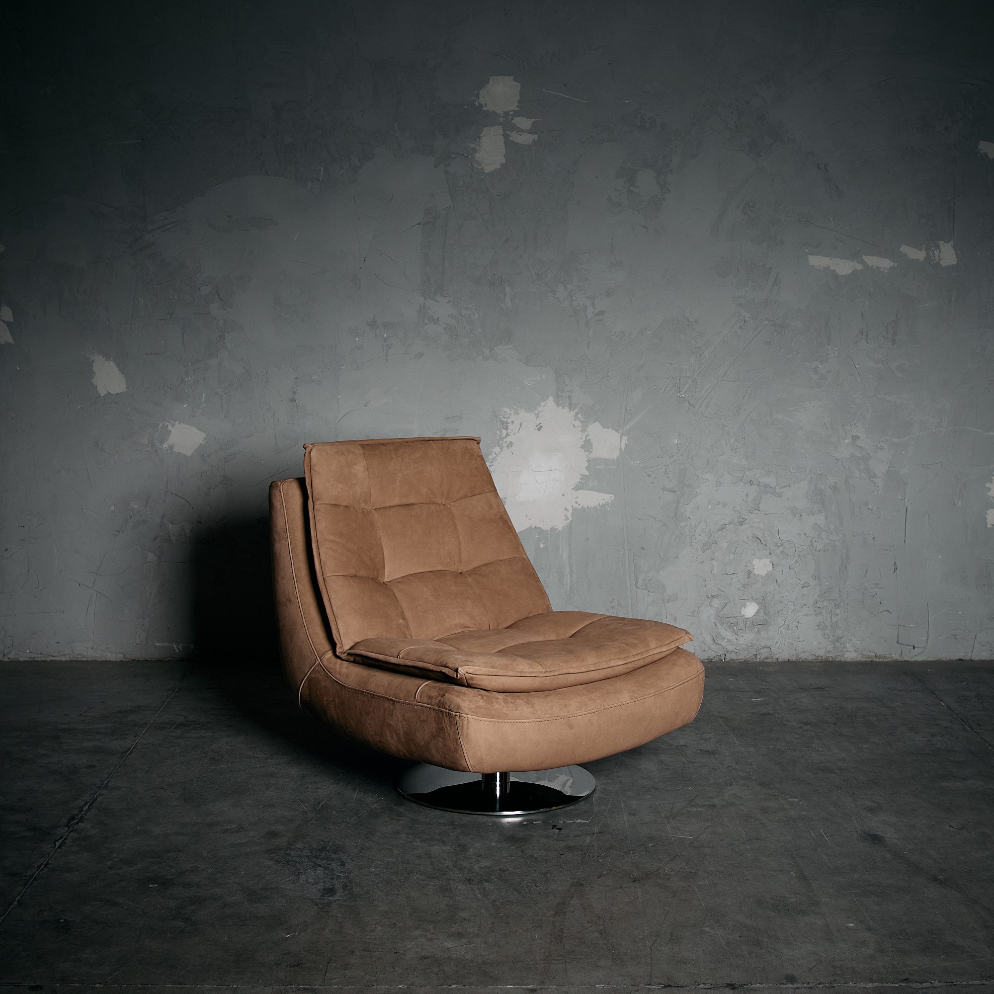Poltrona de cuero 100% natural en color café chocolate con base de fierro giratoria.