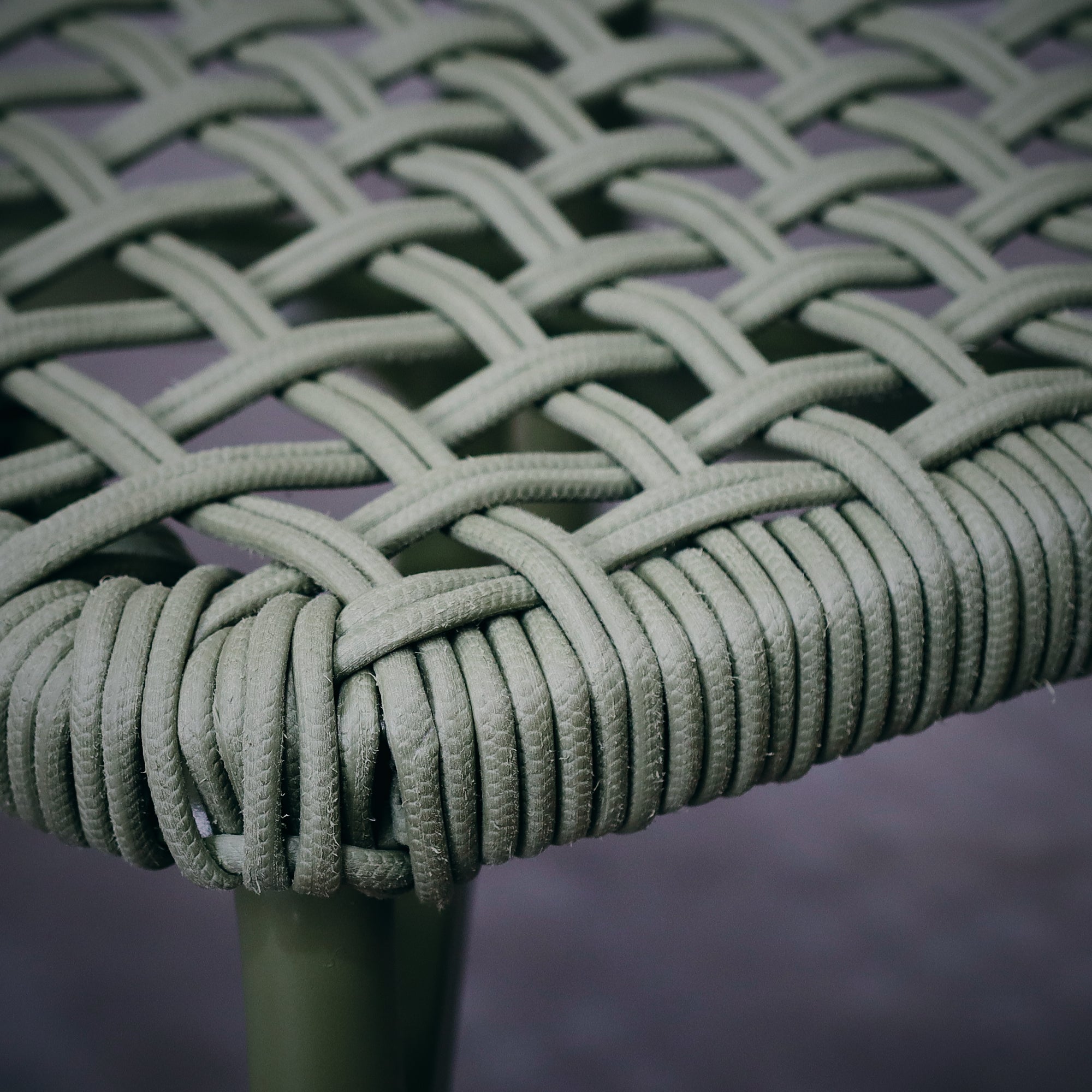 Silla elaborada con una estructura de aluminio electropintado y cuerda náutica en color verde. Este material destaca por ser muy resistente y ligero. Entre sus principales ventajas se encuentra su excelente resistencia a la humedad, lo que lo hace perfecto para mobiliario tanto de interior como exterior.