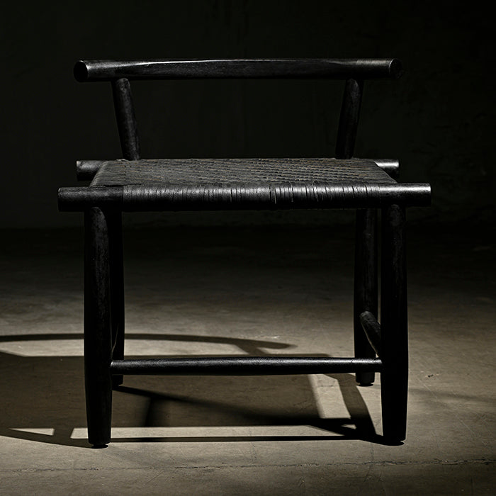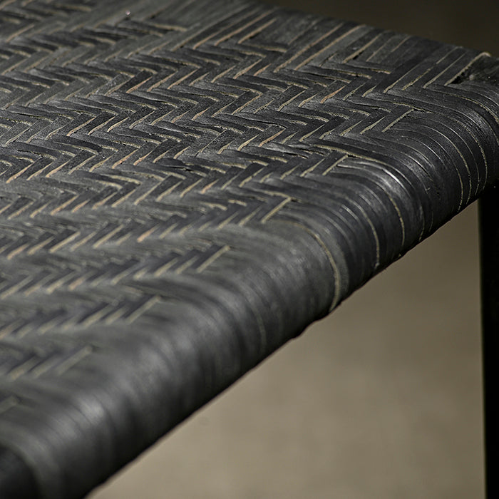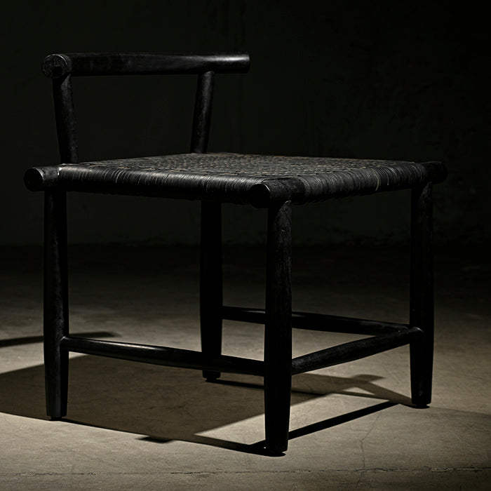 Madera de acacia y cuero acabado negro mate.