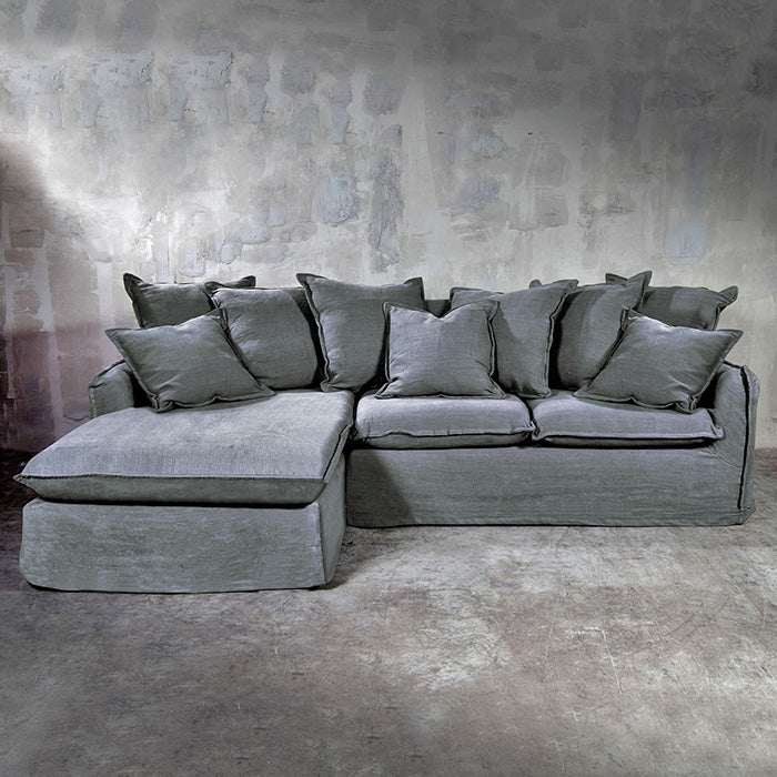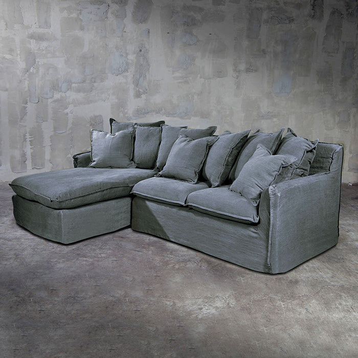 Seccional Carmen, uno de nuestros diseños de fabricación nacional en el que el lino resalta por su calidez al tacto y resistencia.