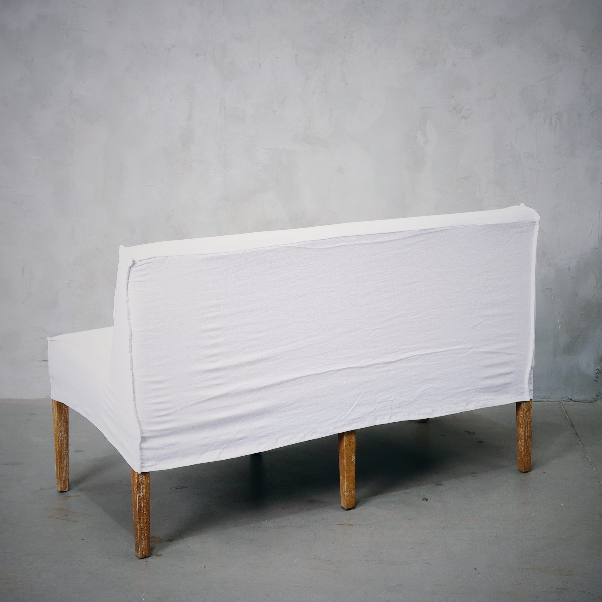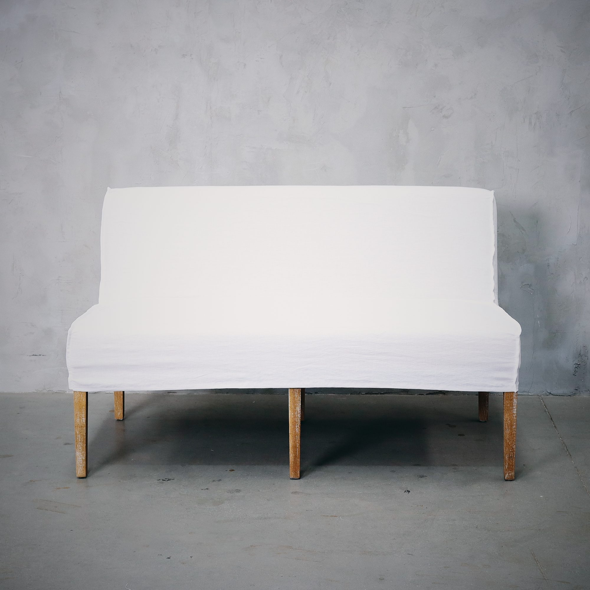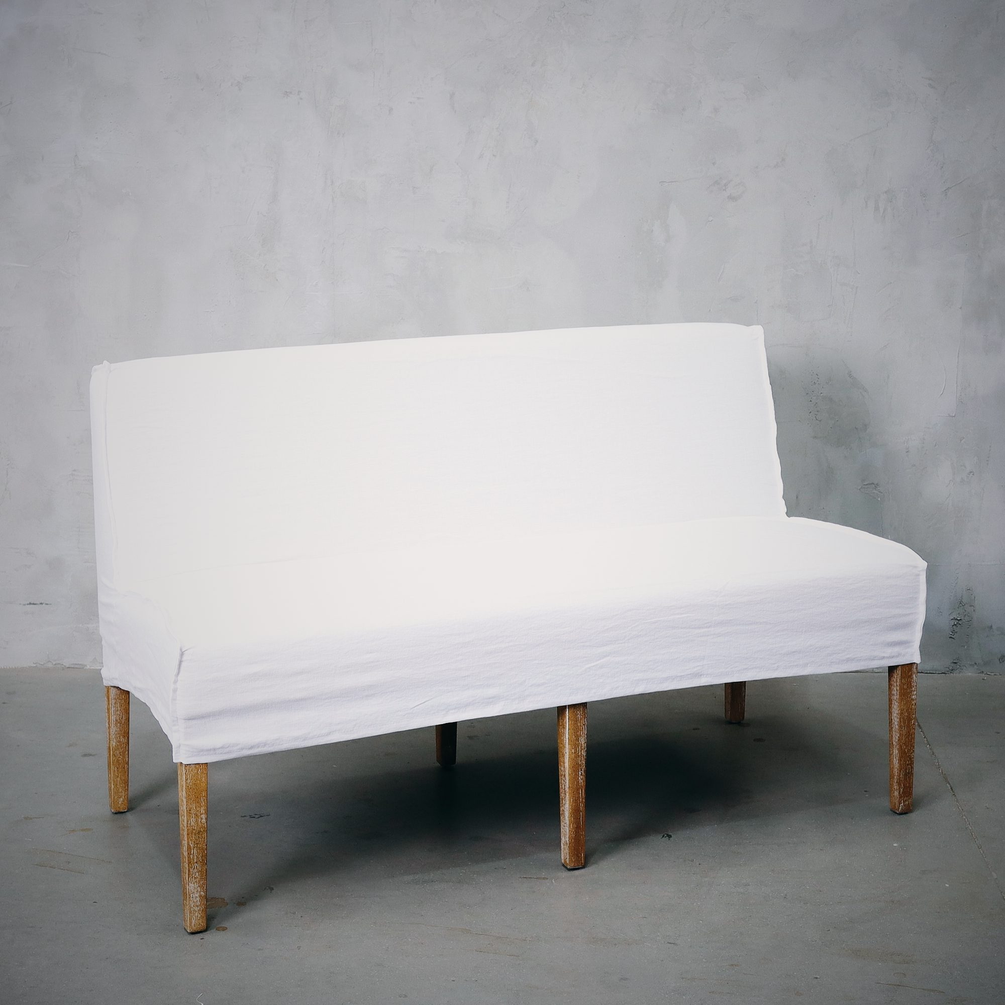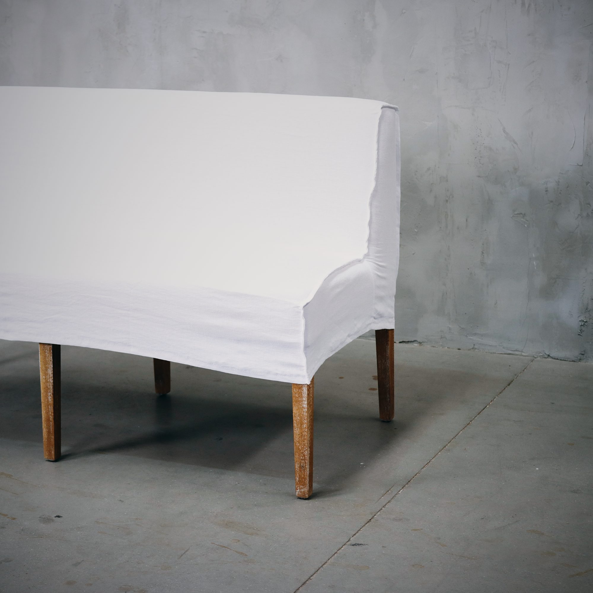 Banqueta de Madera de Gomero con funda de 100% lino crudo.