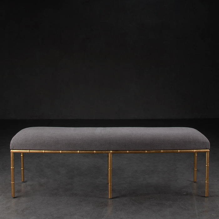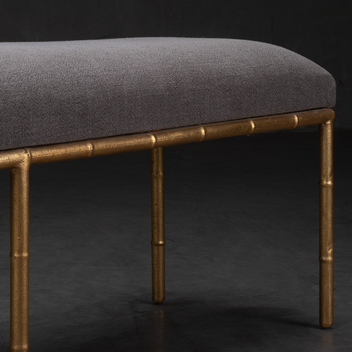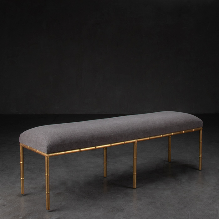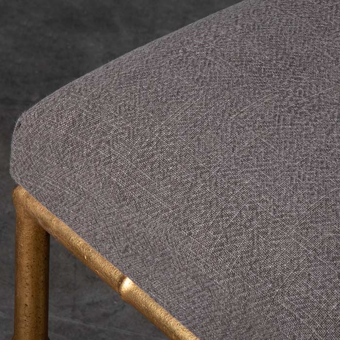Banqueta de fierro en terminación bronce antiguo con tapiz de lino.