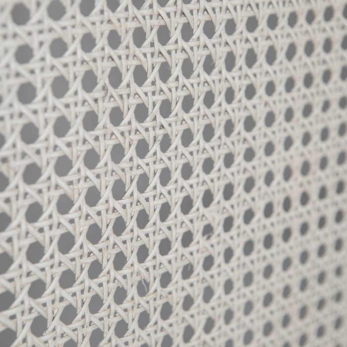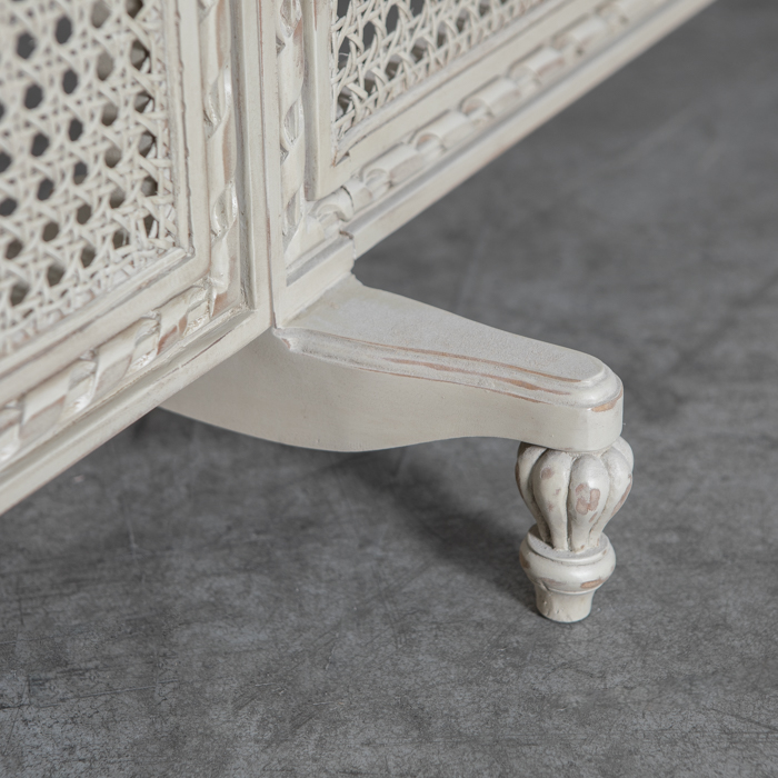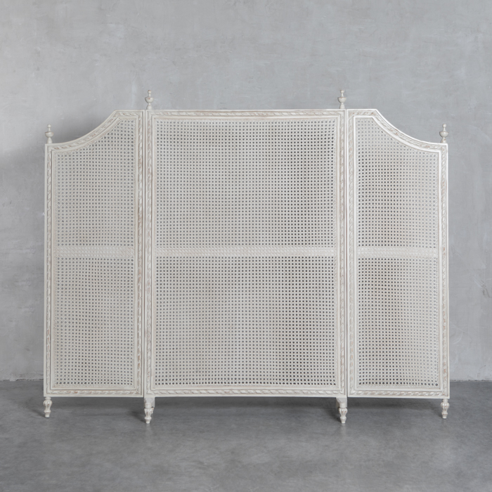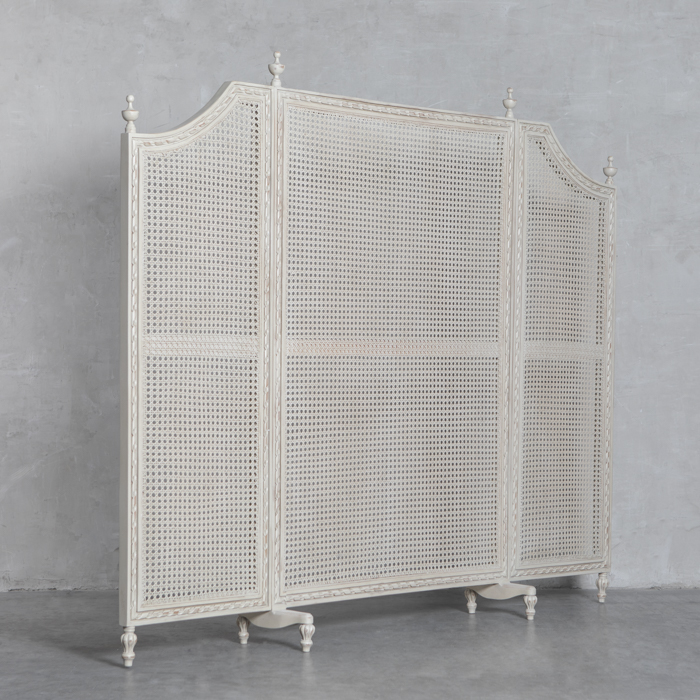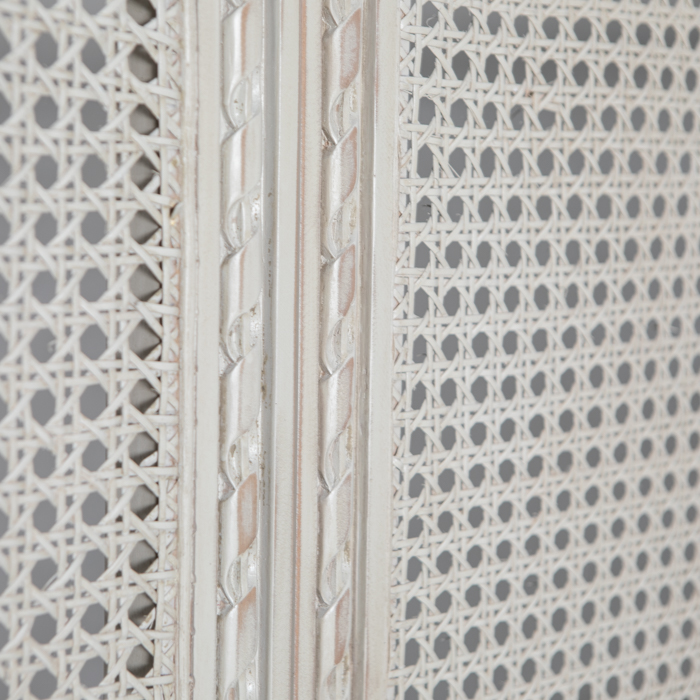 Biombo con estructura de madera de caoba con enjuncado de ratán teñido.