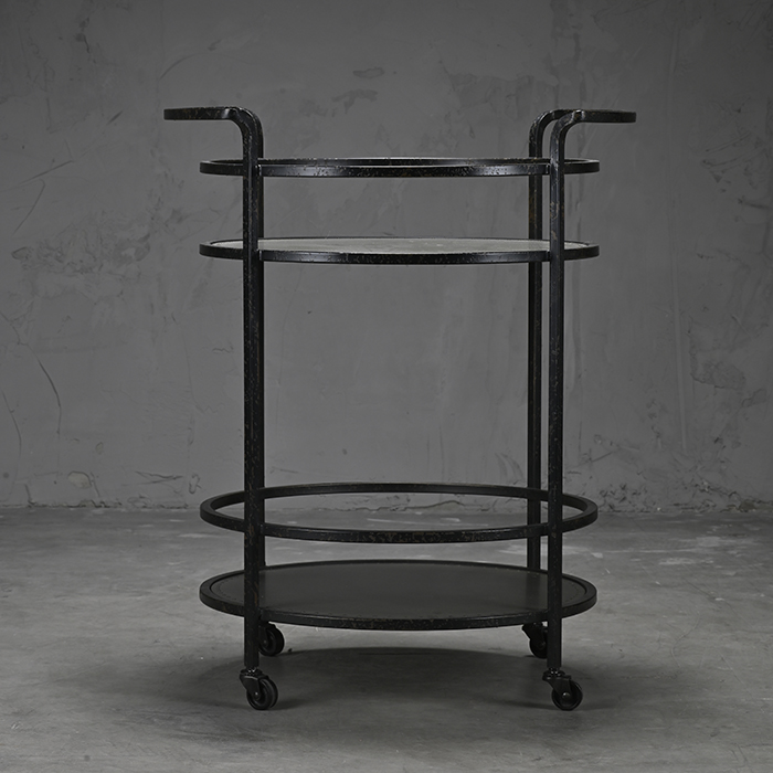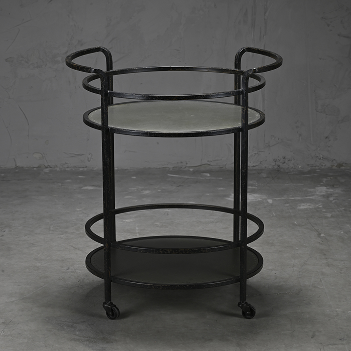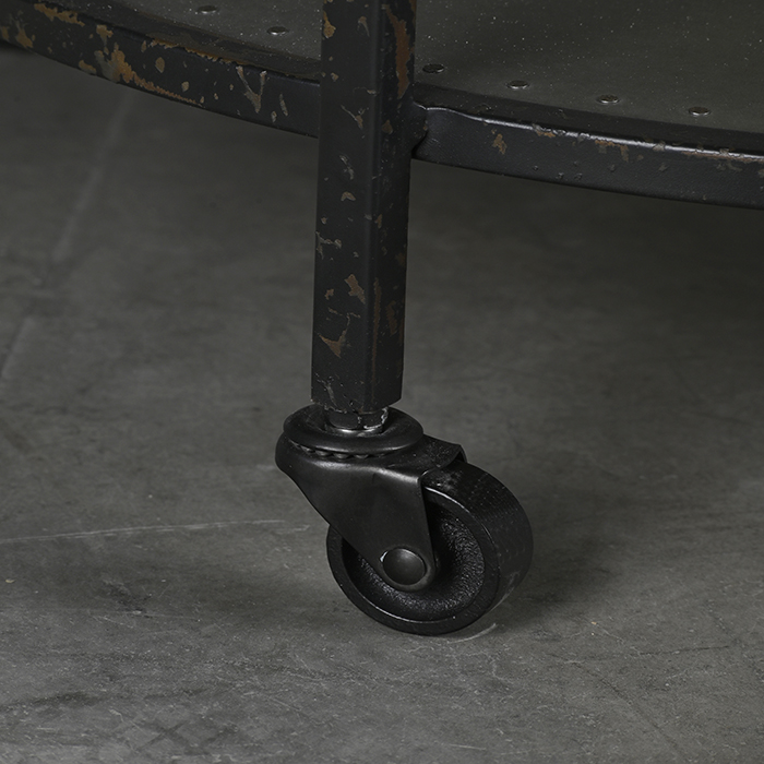 Carrito con bandejas de fierro galvanizado y estructura de fierro.