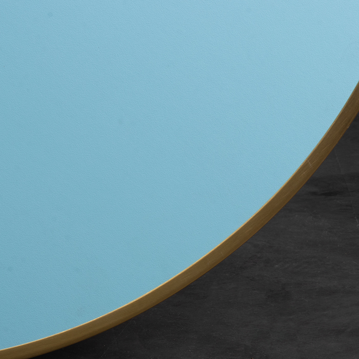 Mesa de melamina con marco de metal color bronce