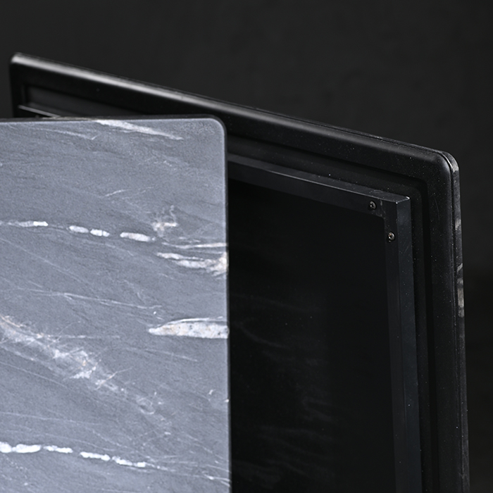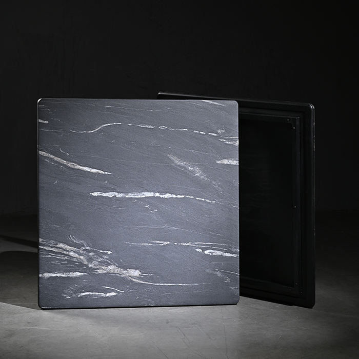 Cubierta tipo piedra gris oscuro. Esta hecha con una tecnología que resiste rayos UV, golpes, fuego y derrame de líquidos.
