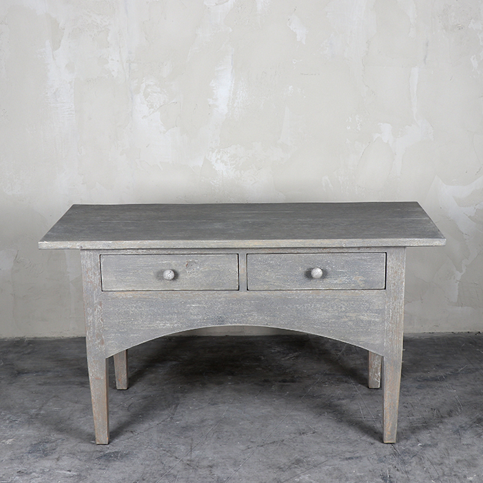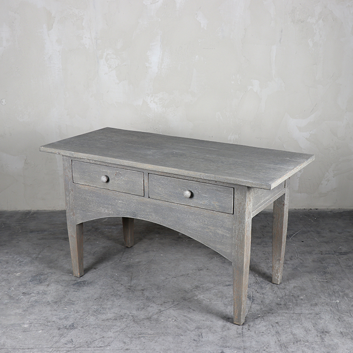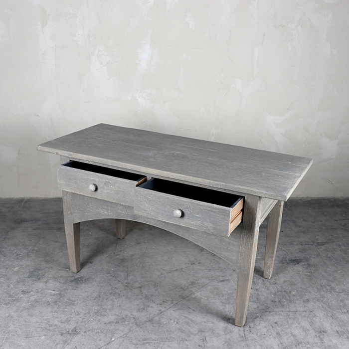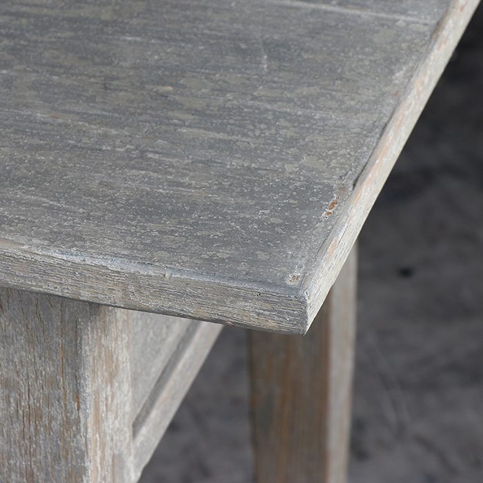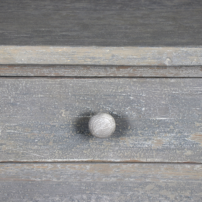 Arrimo de madera de pino reciclado en terminación gris desgastado.