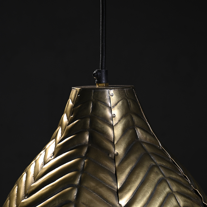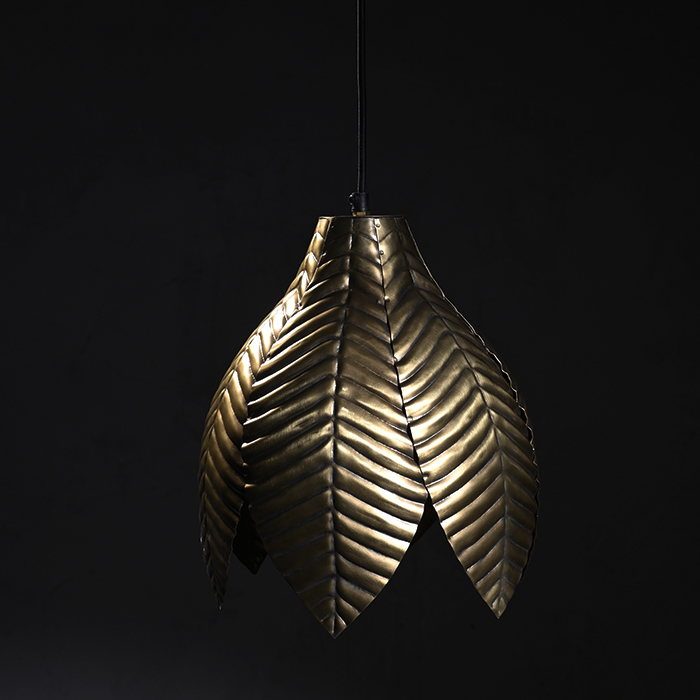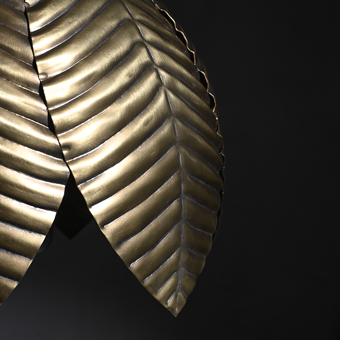 Lámpara de hojas metálicas en terminación bronce envejecido.