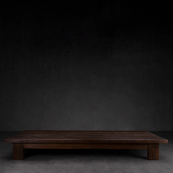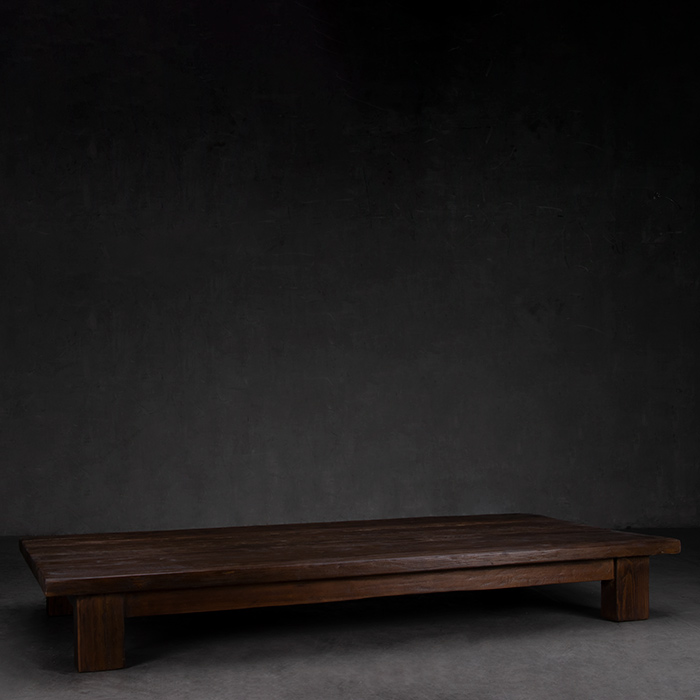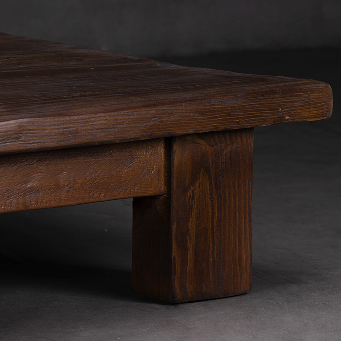 Mesa de centro en madera reciclada terminación oscura.