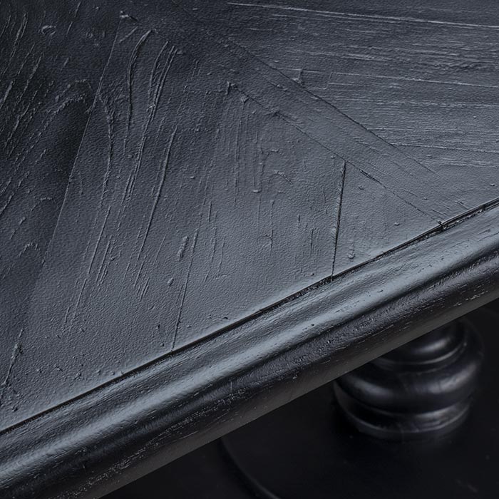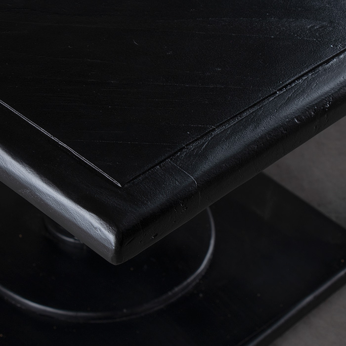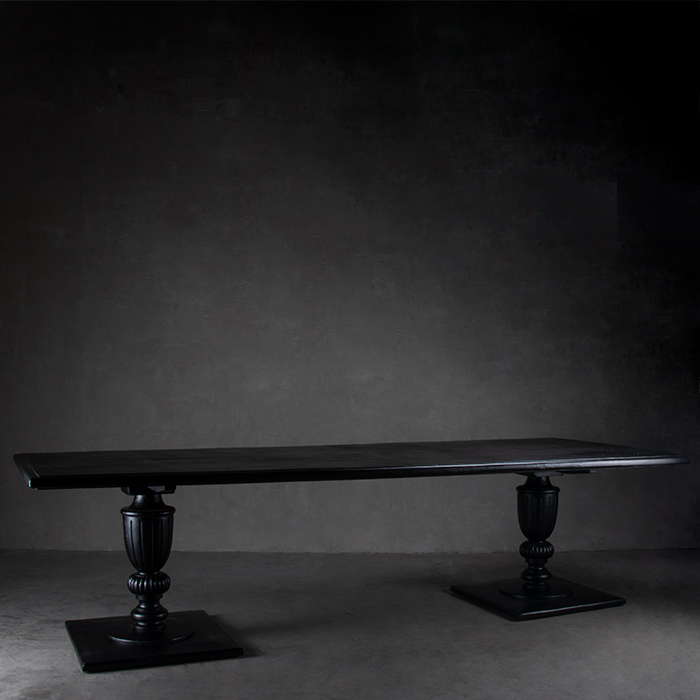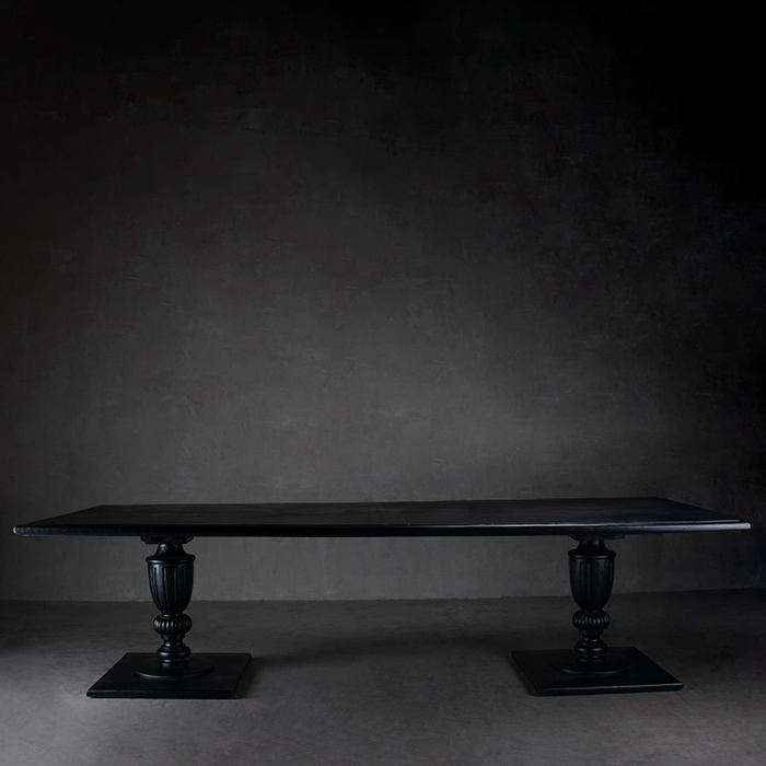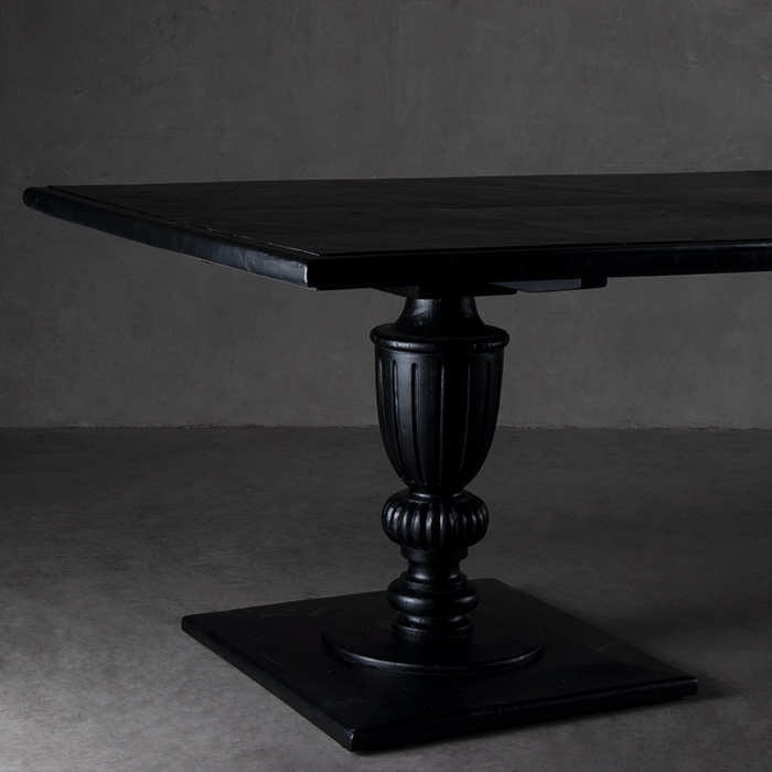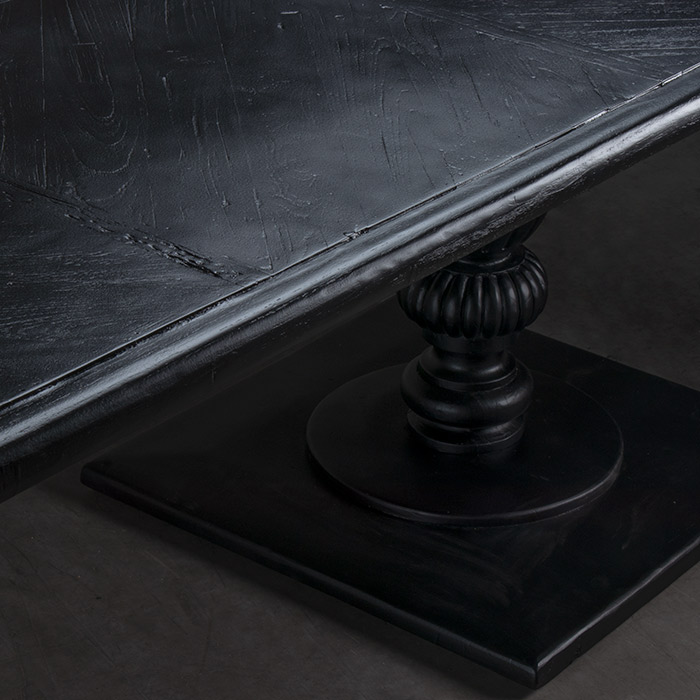 Mesa con patas de madera de mindi y cubierta de madera de teca.