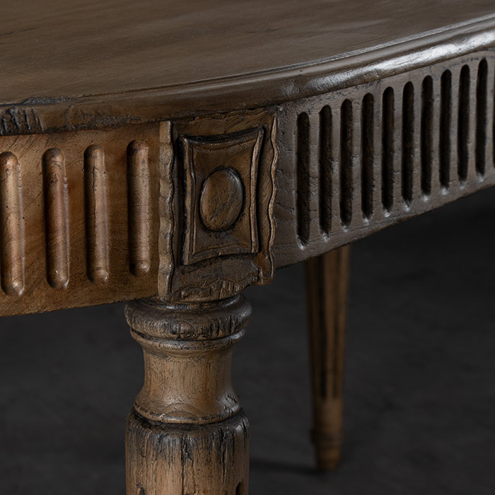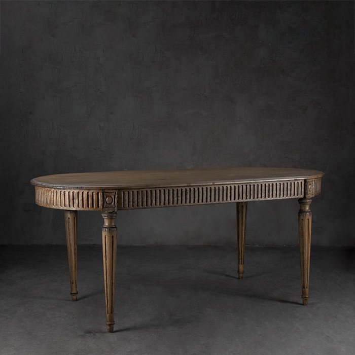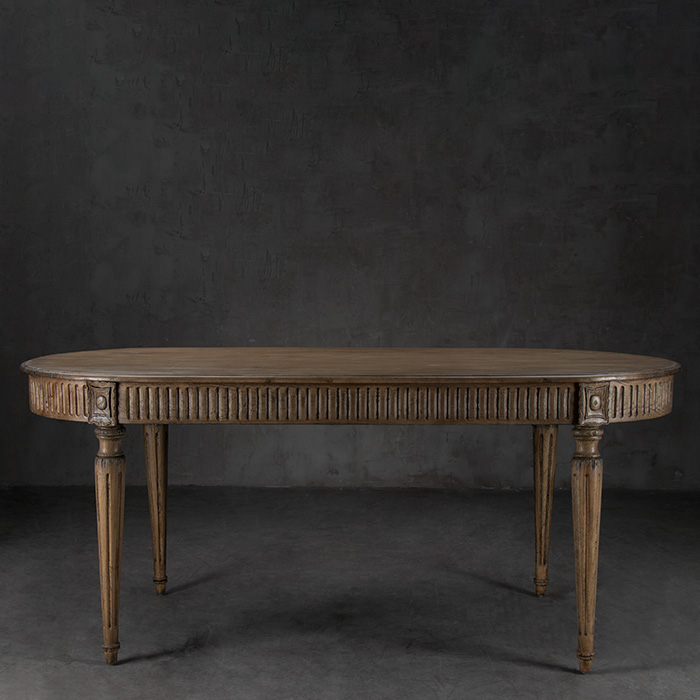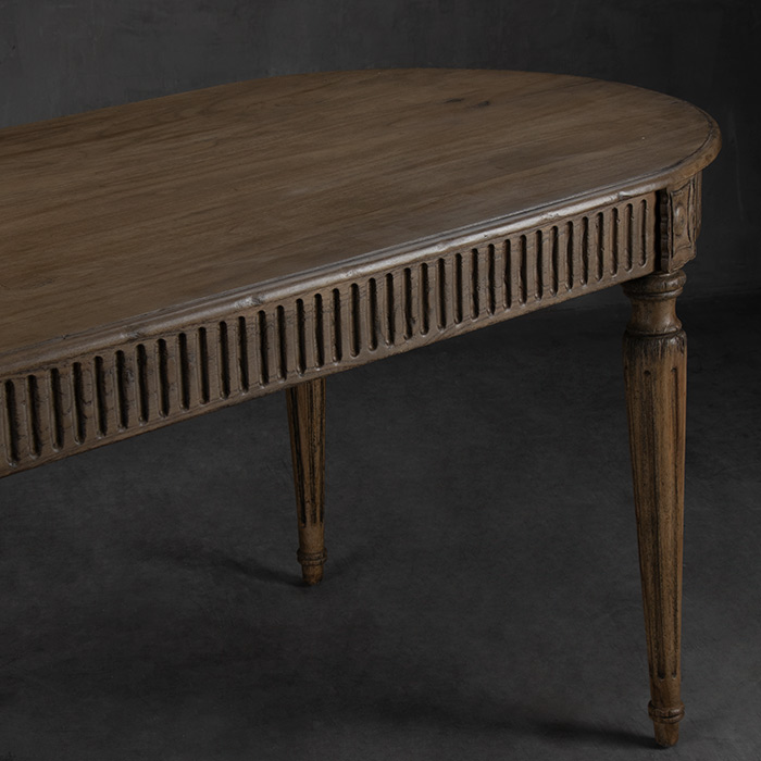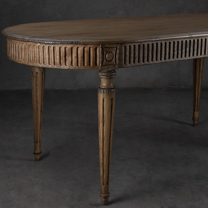 Mesa de comedor fabricada con madera de Mindi natural.