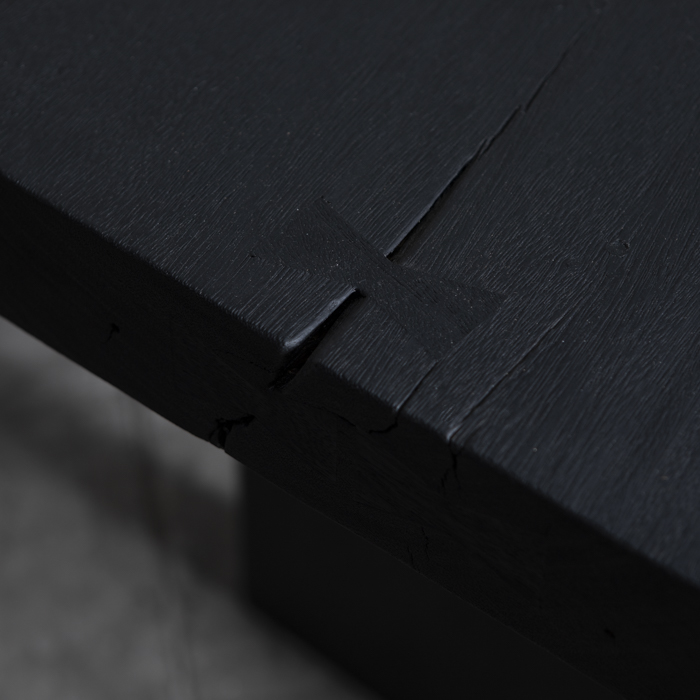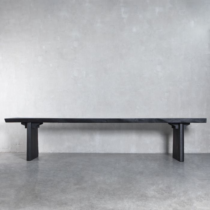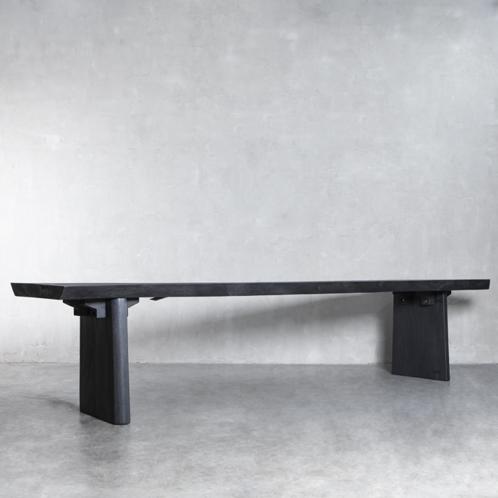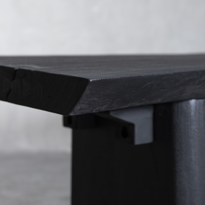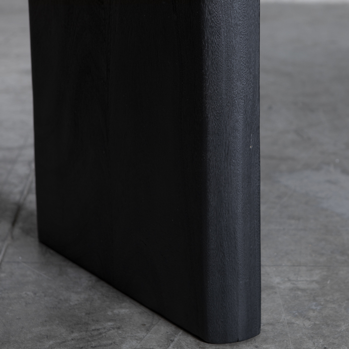 Imponente y minimalista, esta mesa de comedor en madera sólida de Suar con terminación negra destaca por su silueta limpia y proporciones generosas. La veta sutilmente visible bajo el acabado oscuro revela la esencia noble del material, mientras su base escultural aporta carácter y estabilidad. Una pieza contemporánea que viste el espacio con sobriedad, fuerza y autenticidad.