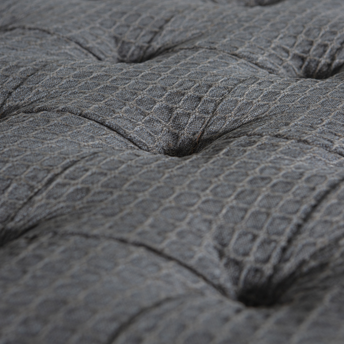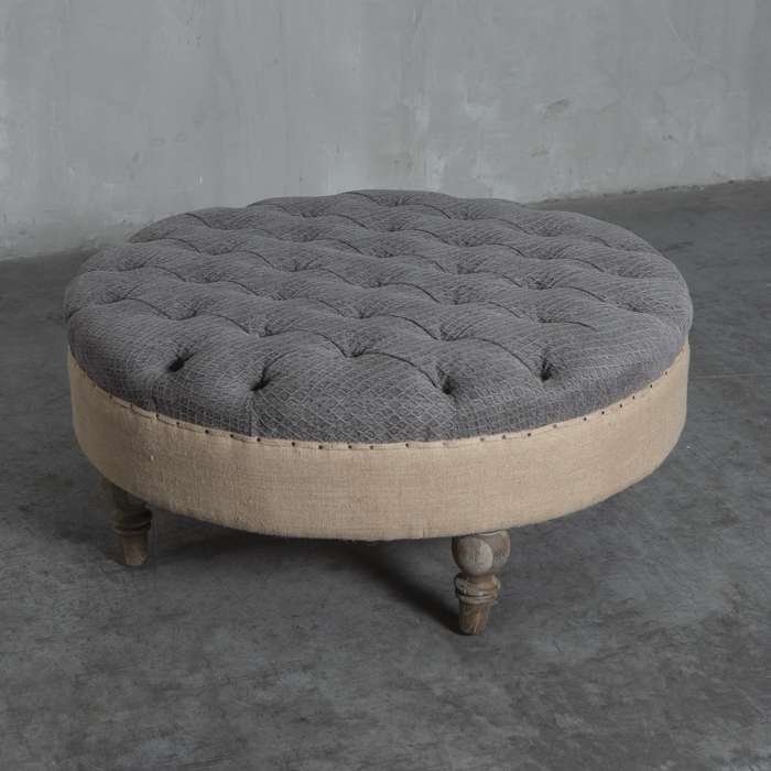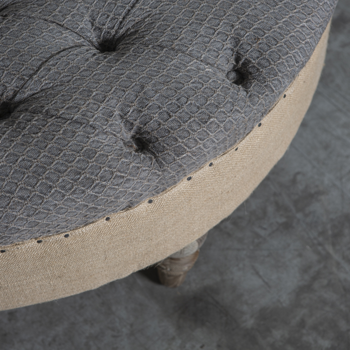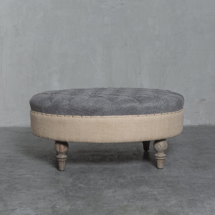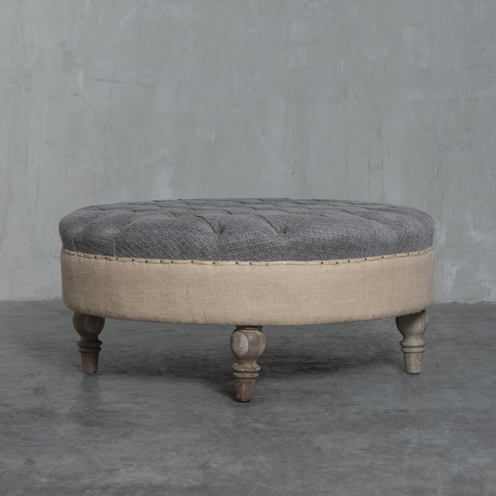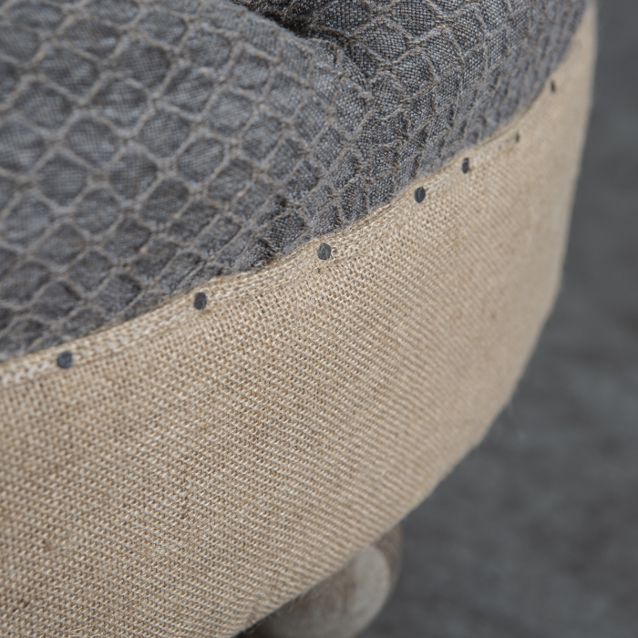 Pouf estructurado en Madera roble gris tapizado en tela lino gris.
