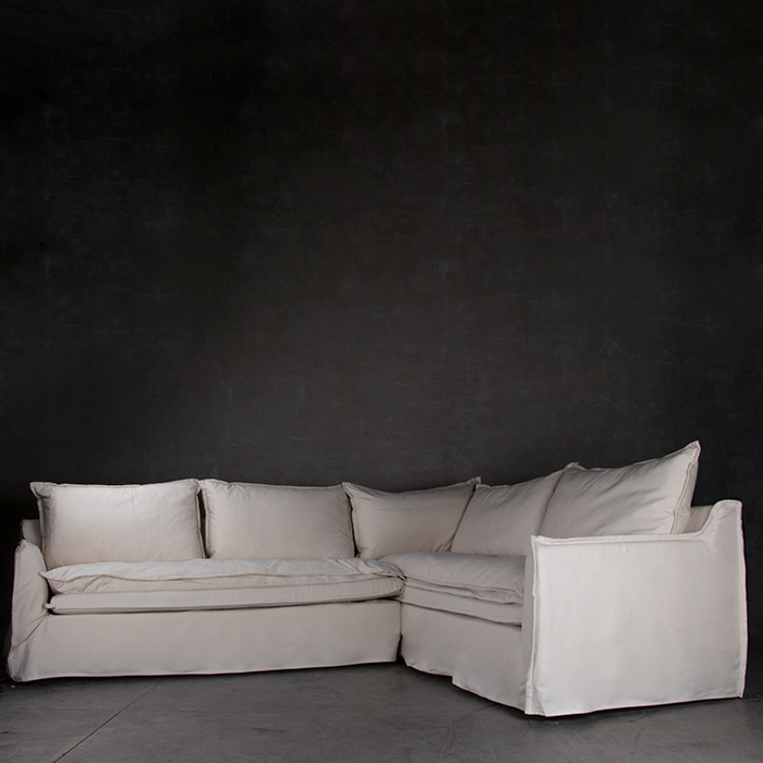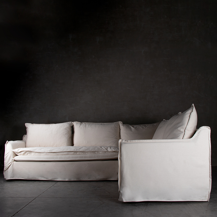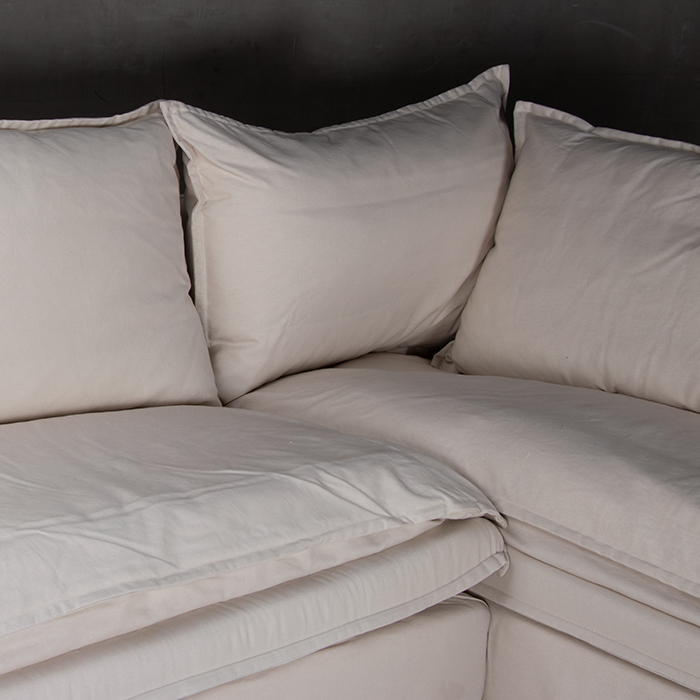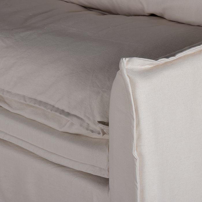 Imagen referencial. Sofá con funda de lino y algodón color beige.