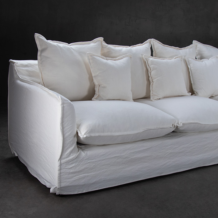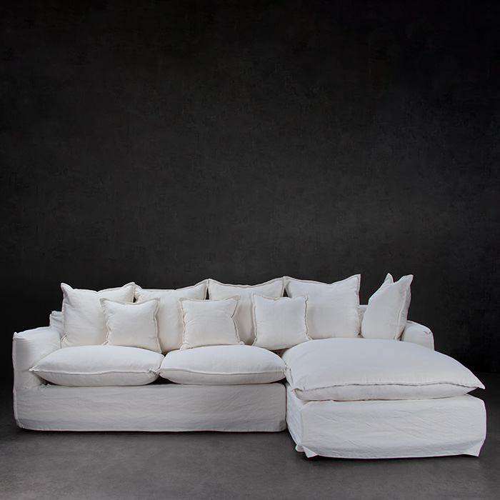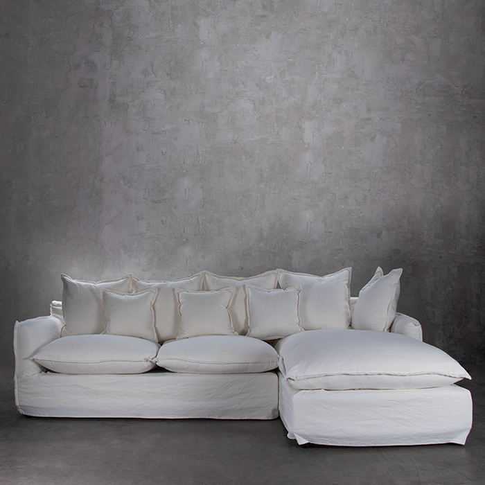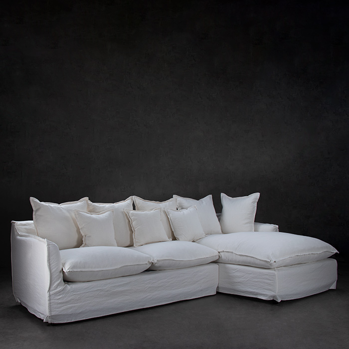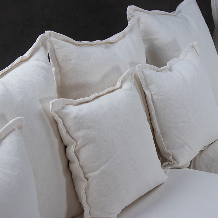 Seccional con Espuma Super Soft D30, estructura de pino seco y tela está compuesta por 100% algodón color Crudo.