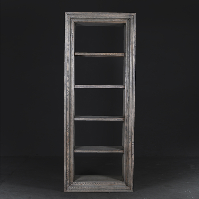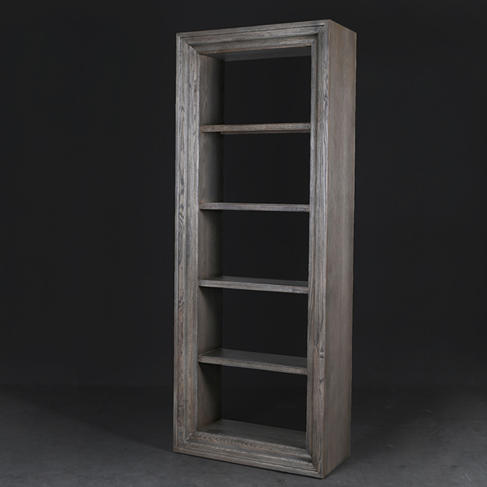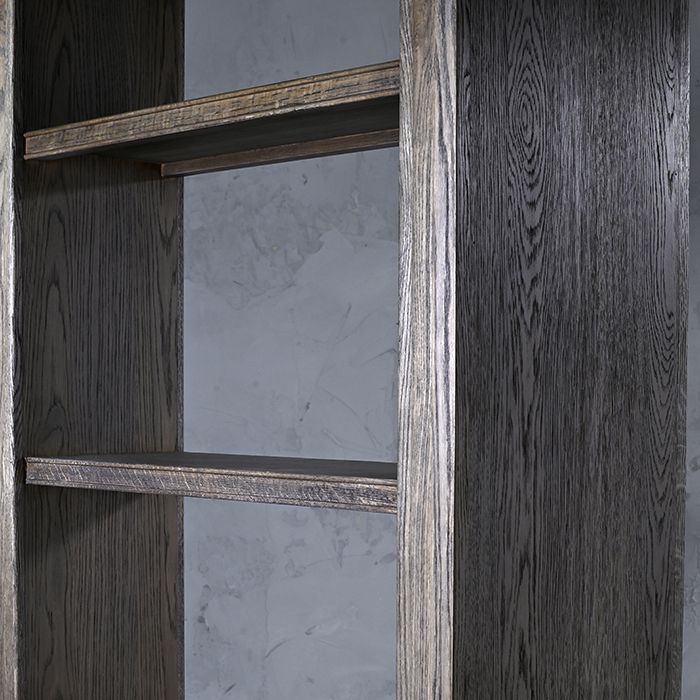 Estantería reversible con estructura de roble rojo y enchapada en roble con terminación avellana.