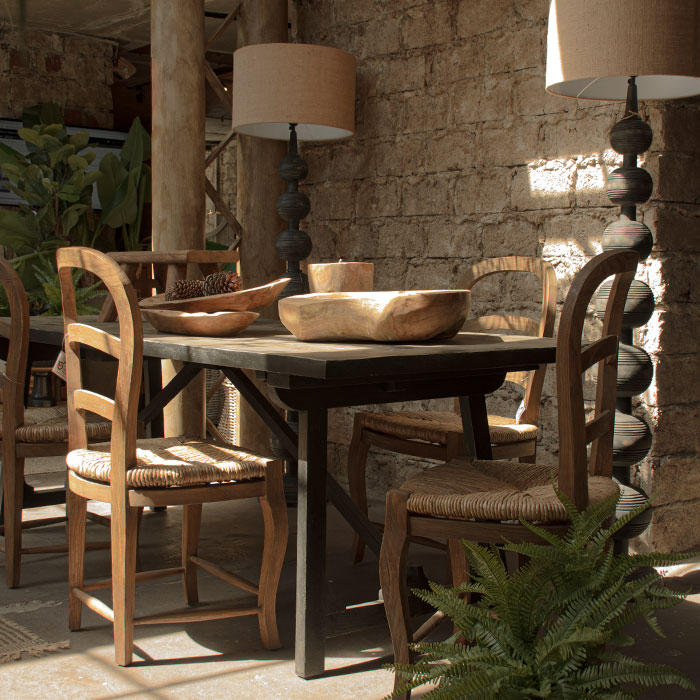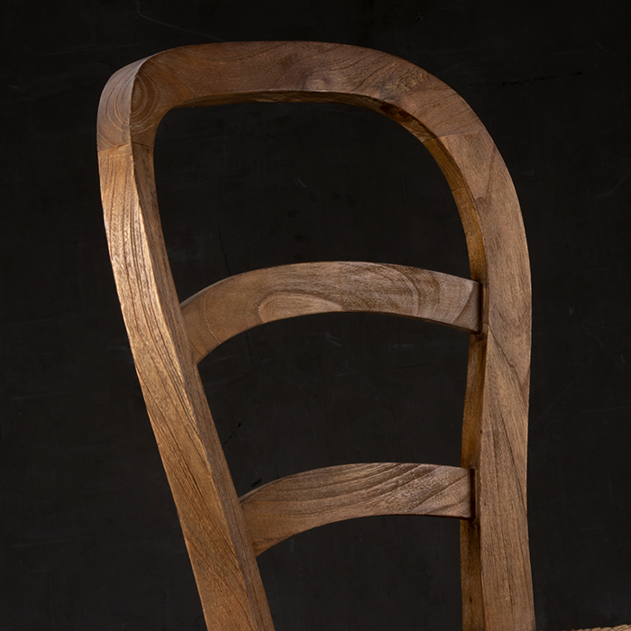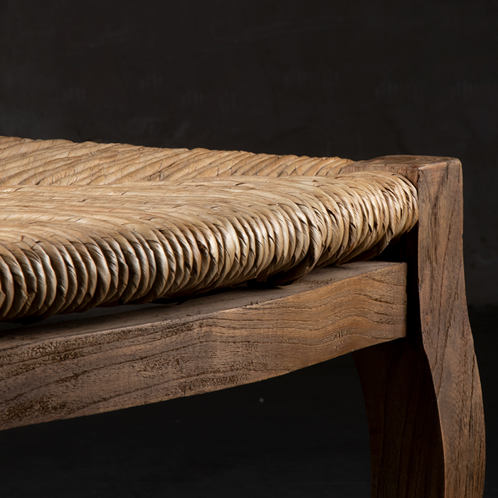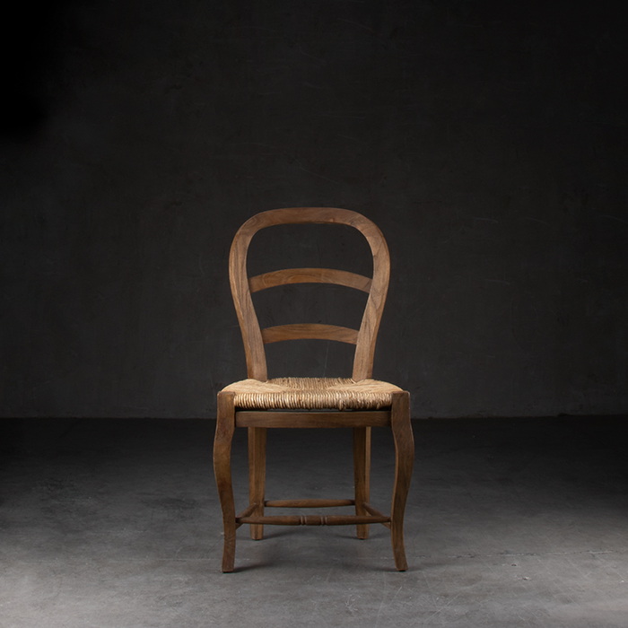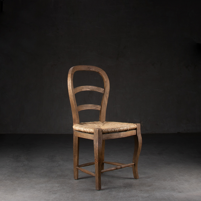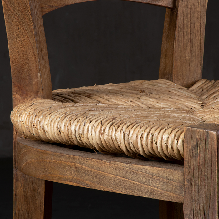 Silla de madera de canelo y enjuncado de hoja de platano enroscada.
