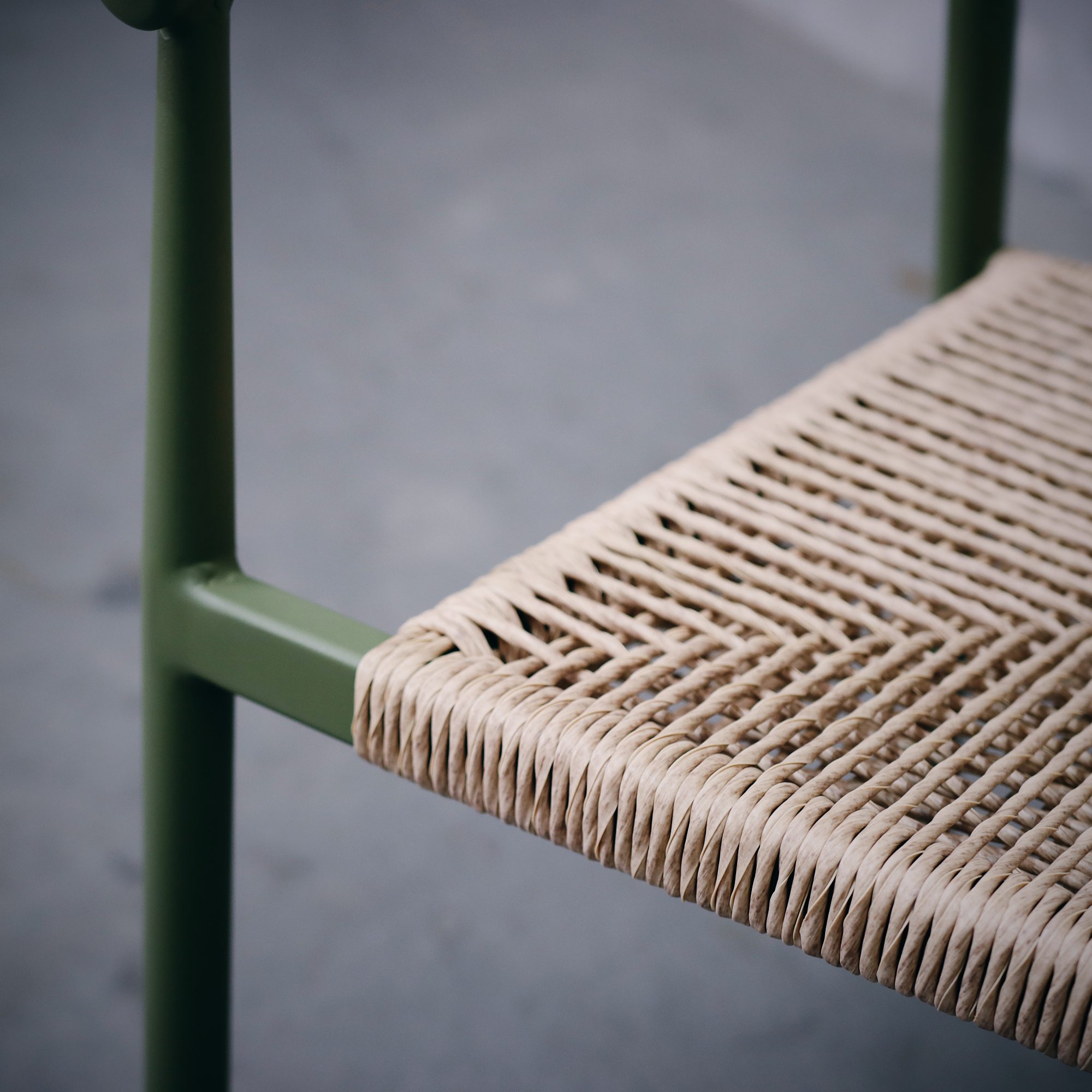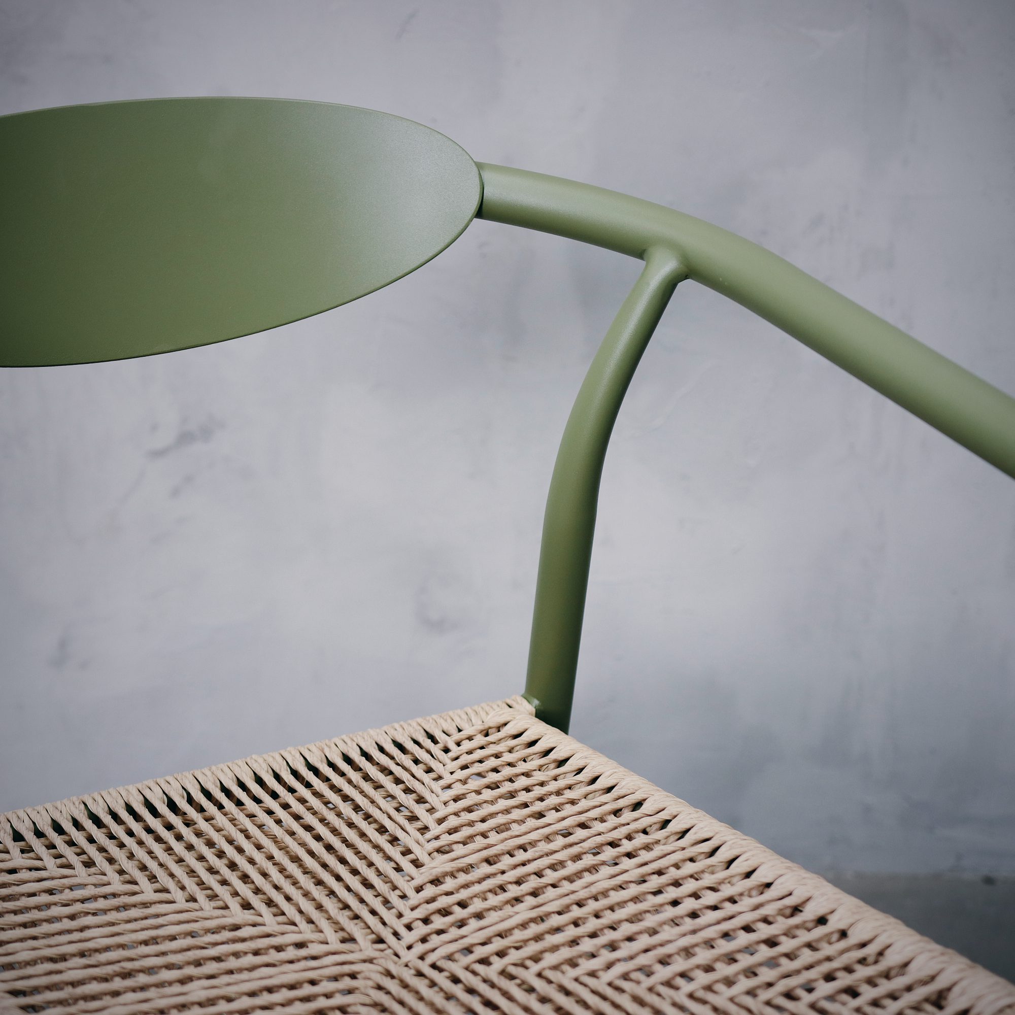 Silla elaborada con una estructura de aluminio y cuerda sintética en color natural. Este material destaca por ser muy resistente y ligero. Entre sus principales ventajas se encuentra su excelente resistencia a la humedad, lo que lo hace perfecto para mobiliario tanto de interior como exterior.