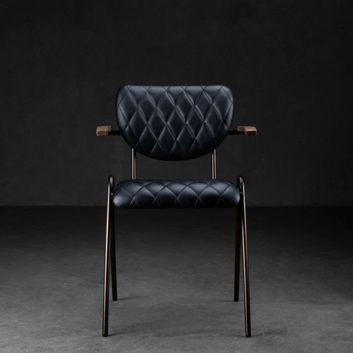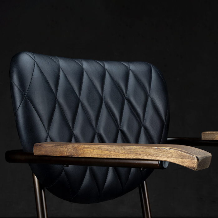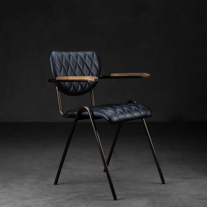 Silla de estructura de fierro y cuero negro
