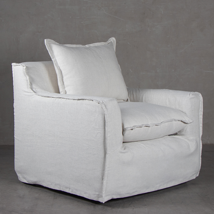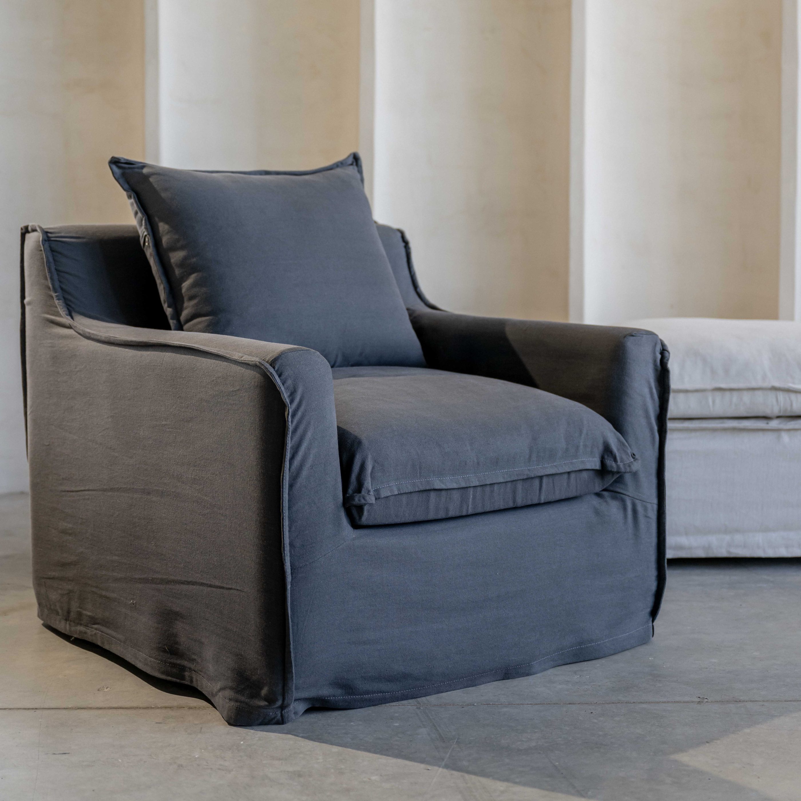El Sillón Concilio es una pieza de diseño contemporáneo, fabricada 100% en Chile, que celebra el valor del trabajo artesanal y la selección minuciosa de materiales. Tapizado en lino 100% natural importado desde el Líbano, su hilado de 600 g le confiere una textura rica, gran cuerpo y una resistencia excepcional al uso diario.
