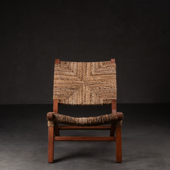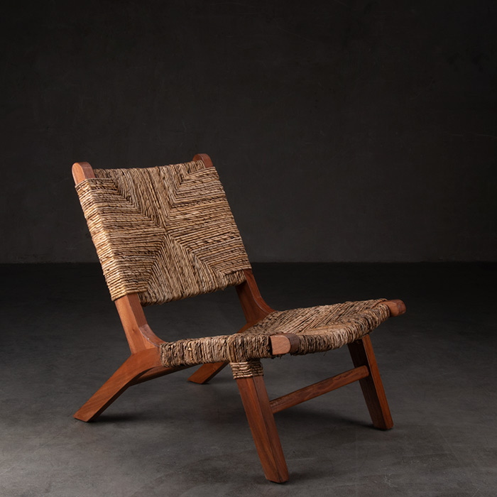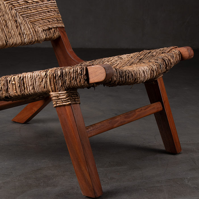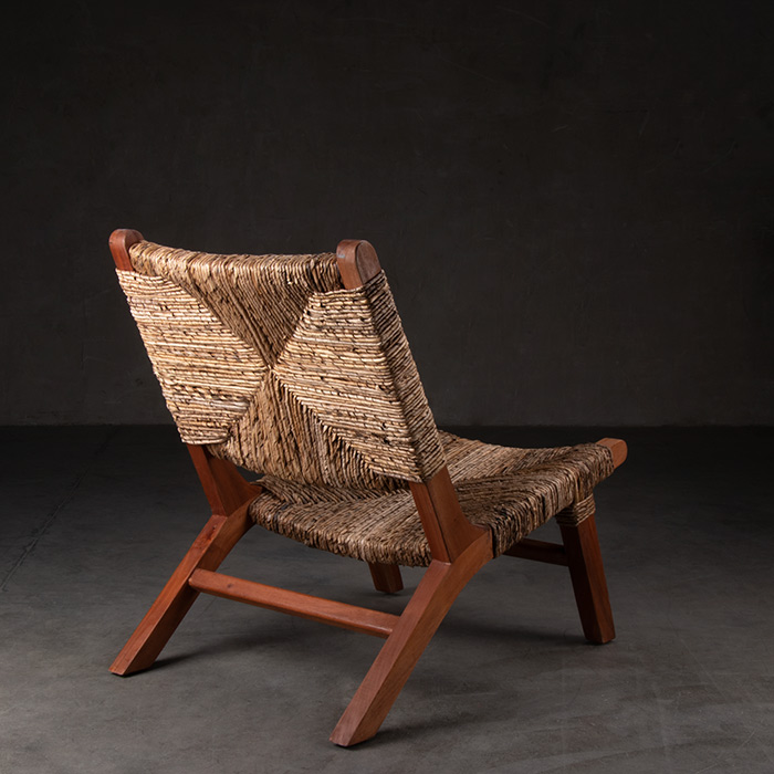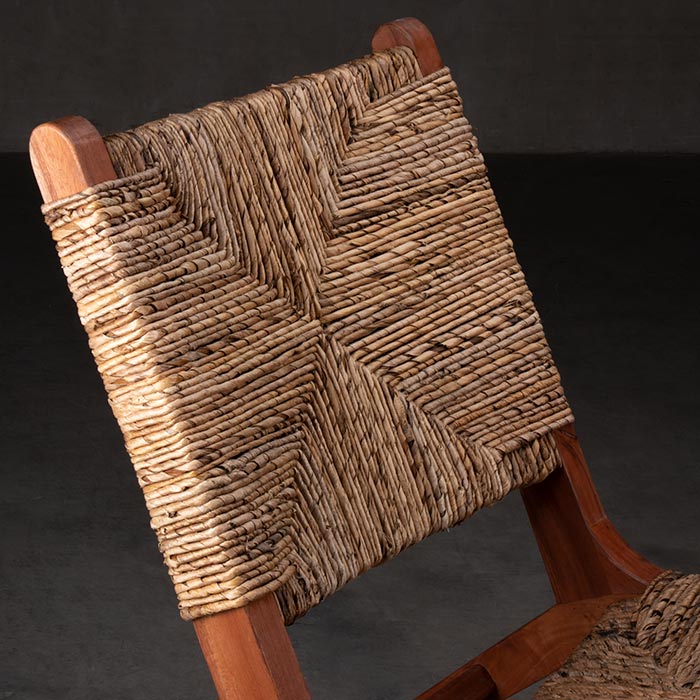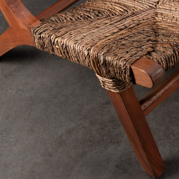 Sitial de madera de caoba y tejido de hoja de plátano enroscado