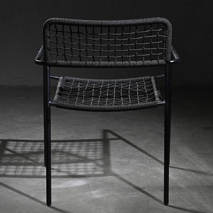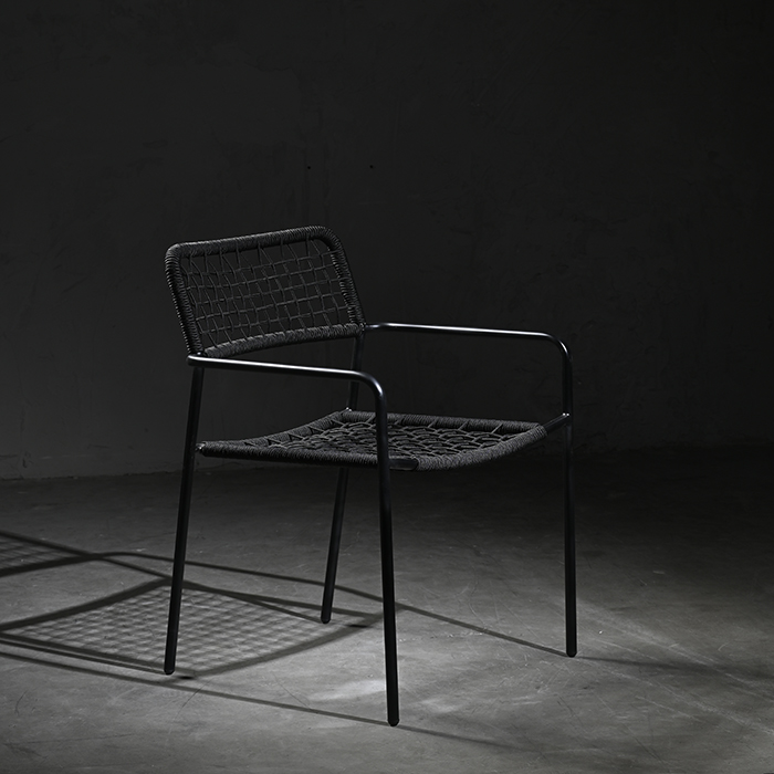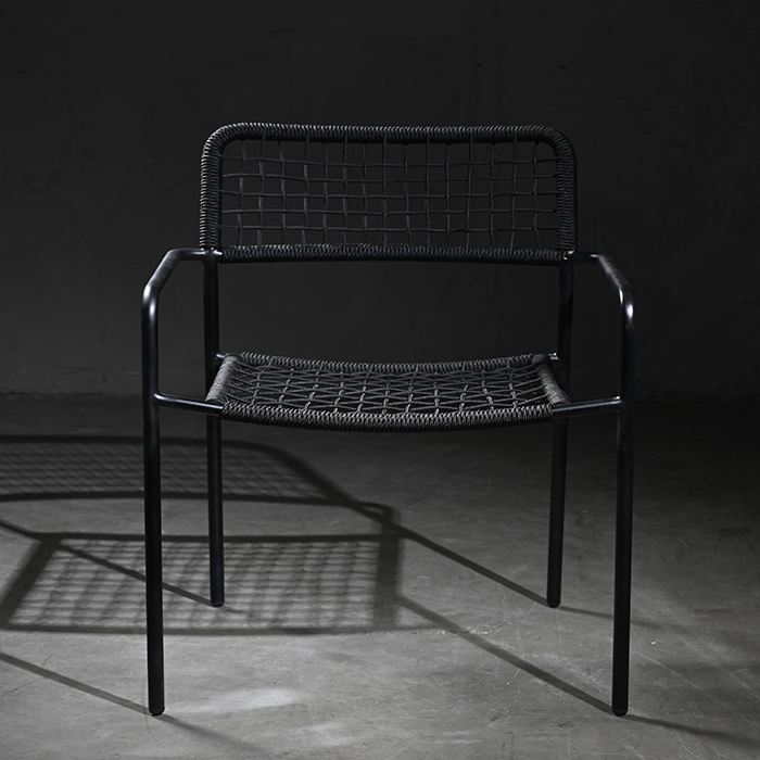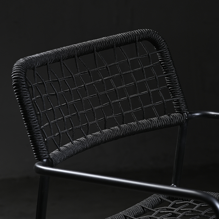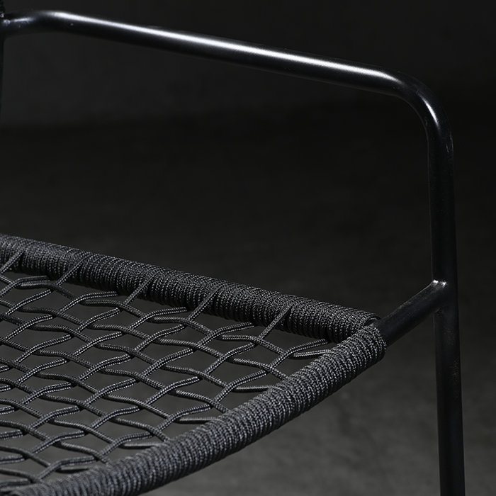 Sitial apilable de fierro galvanizado en terminación negro y cuerda náutica negro.