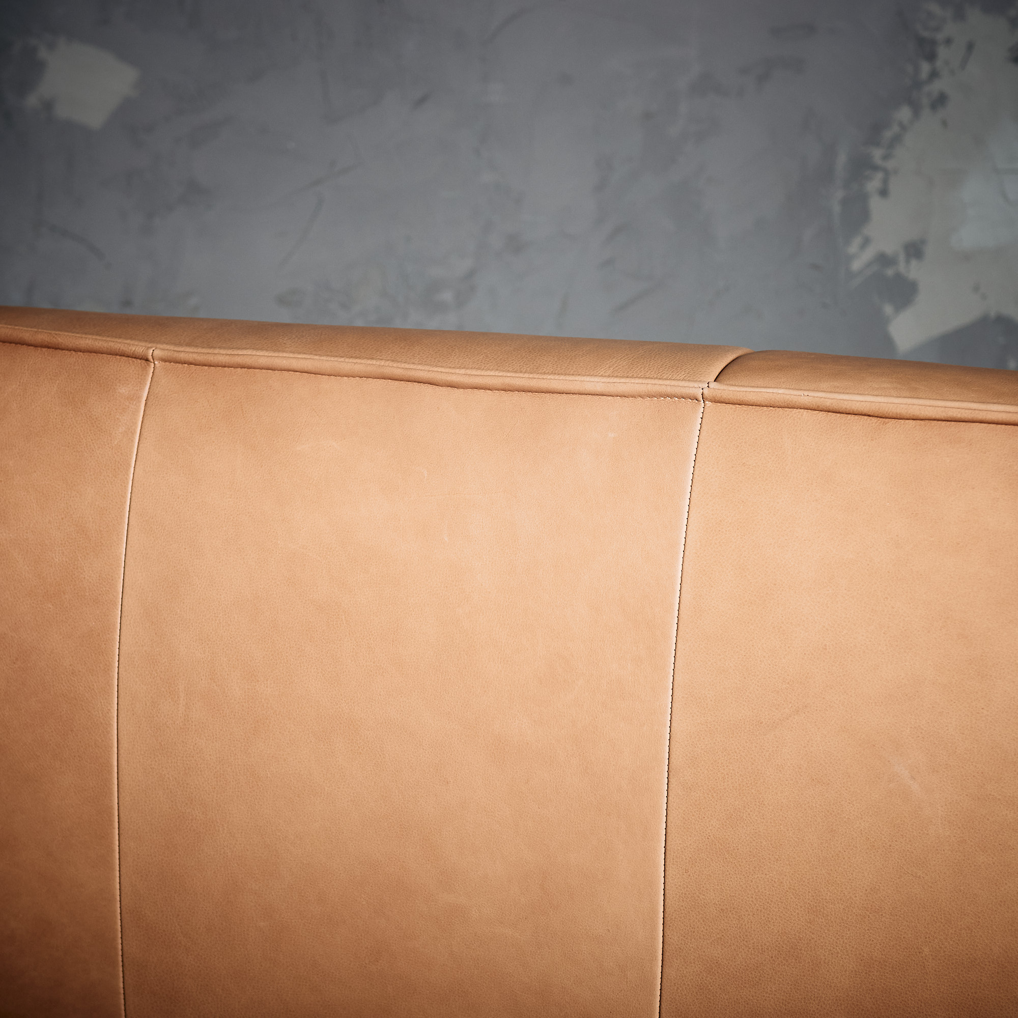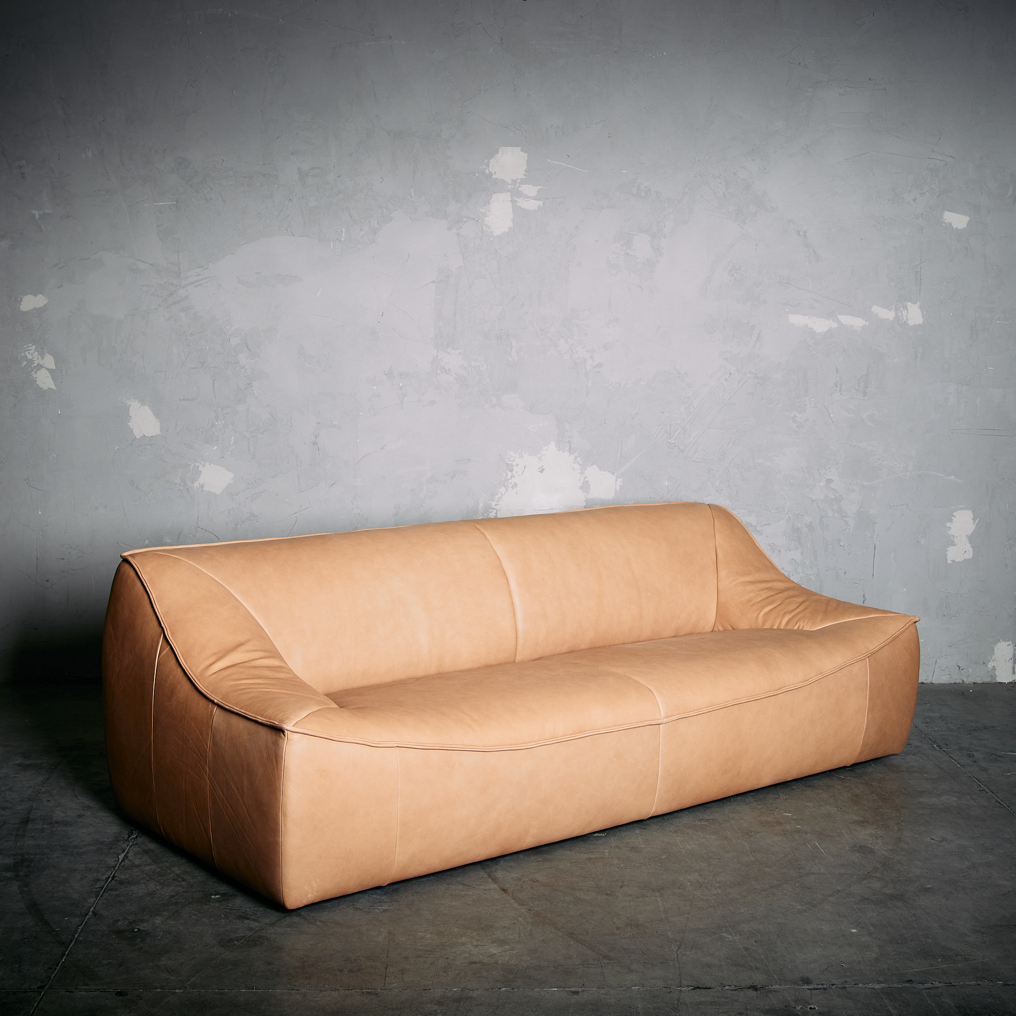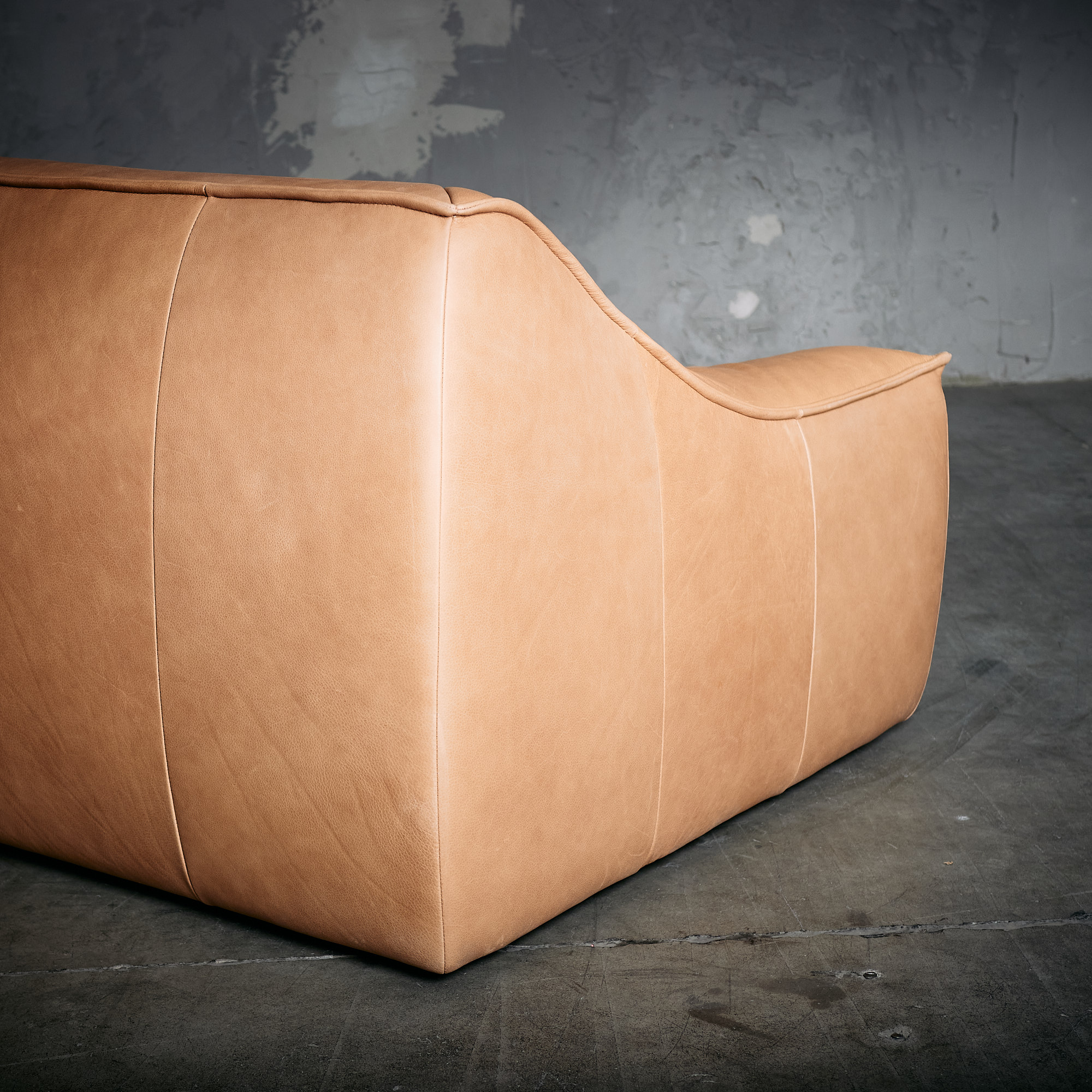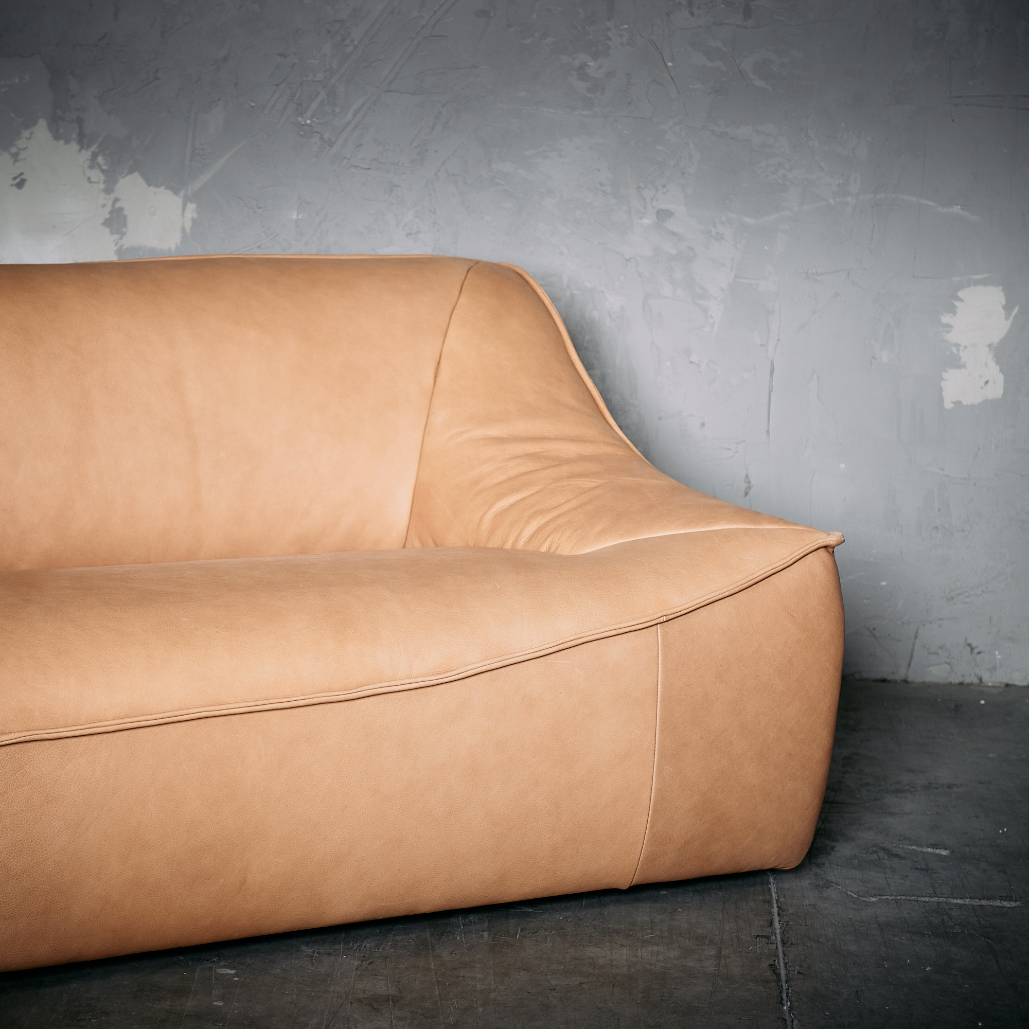 Sofisticación y confort en un solo diseño: este sofá de cuero 100% italiano natural en elegante color camel aporta lujo y estilo a cualquier espacio.