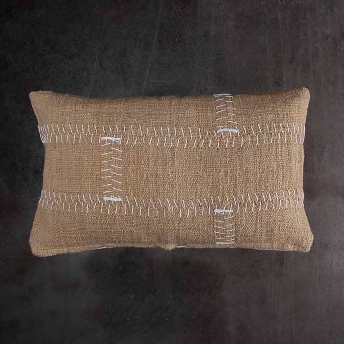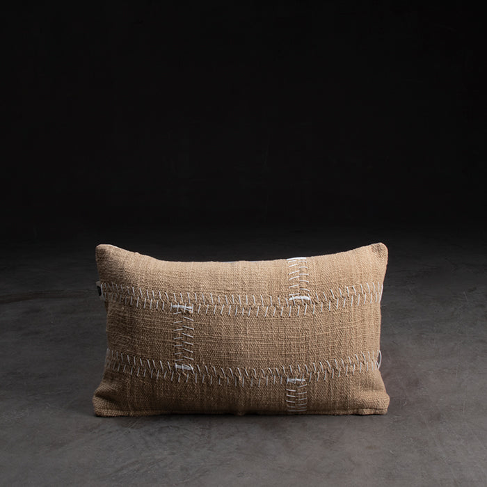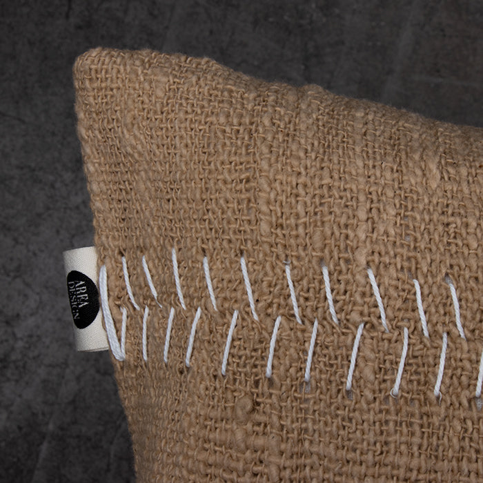 Cojín con funda de algodón tejido a mano.