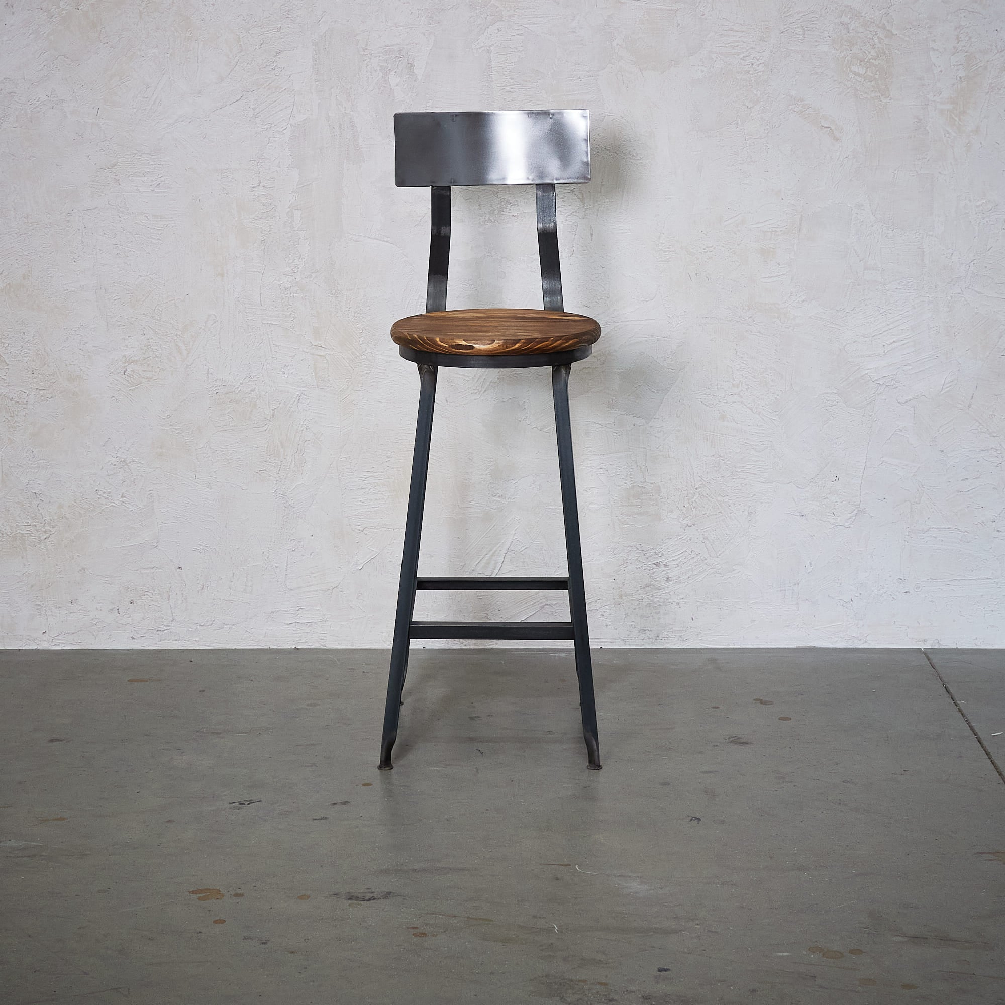 Piso fabricado en fierro con asiento de madera
