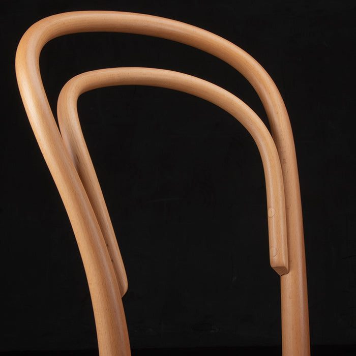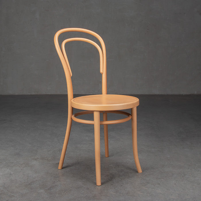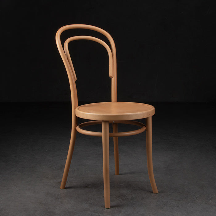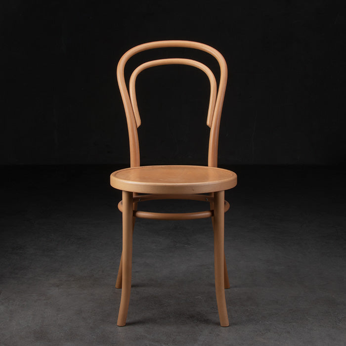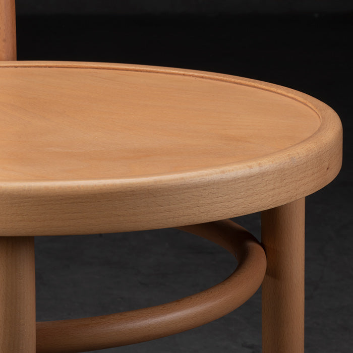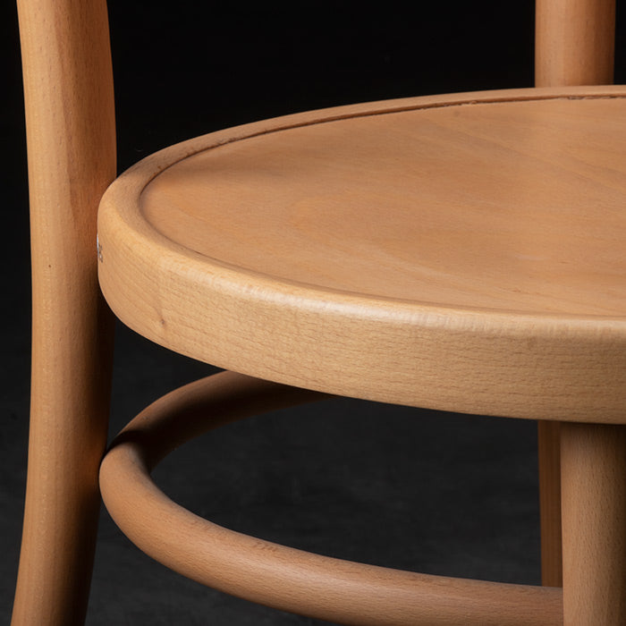Silla de alto trafico con estructura en madera y asiento enchapado en madera de haya.
