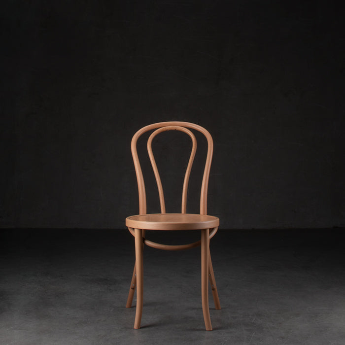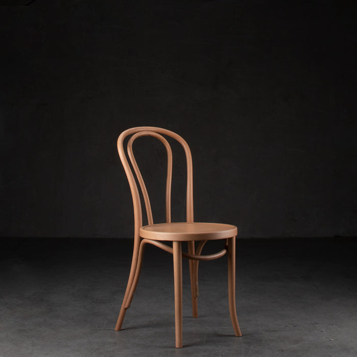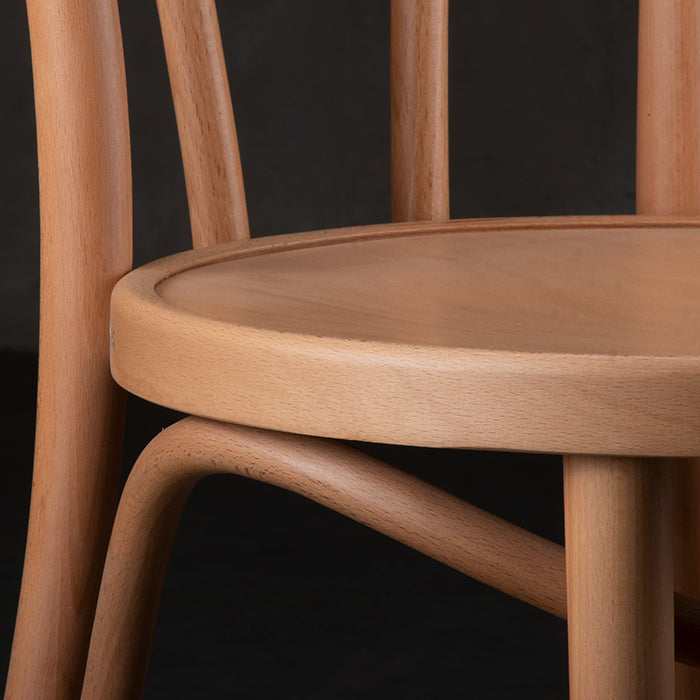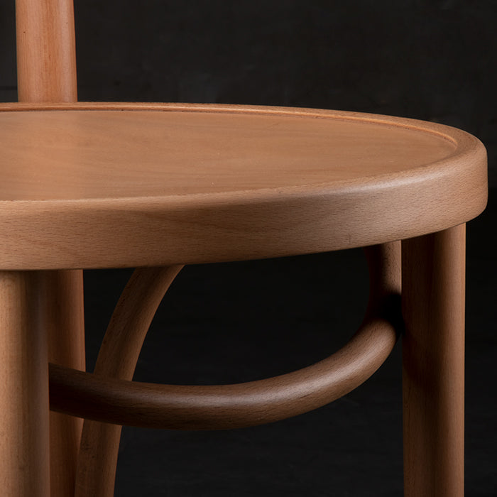 Silla de alto tráfico con estructura en madera de haya y asiento enchapado en madera de haya.