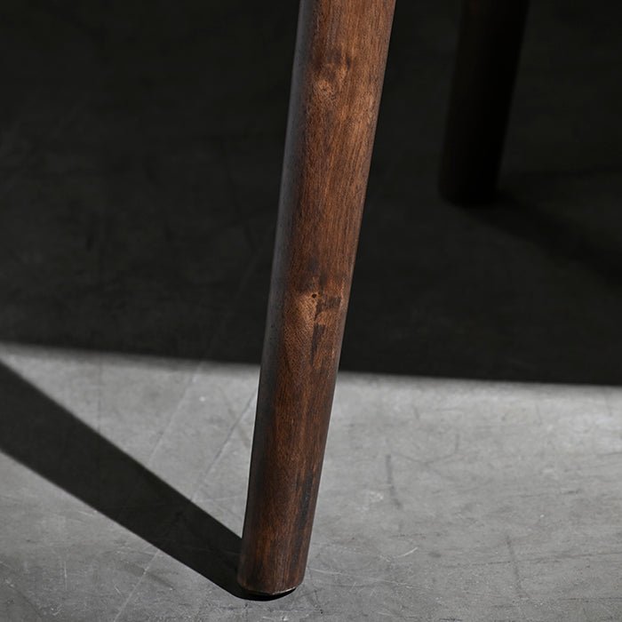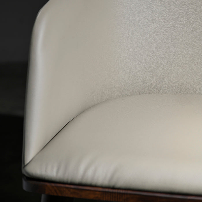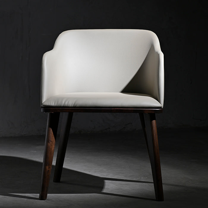 Silla de cuerina beige con madera de gomero en terminación nogal.
