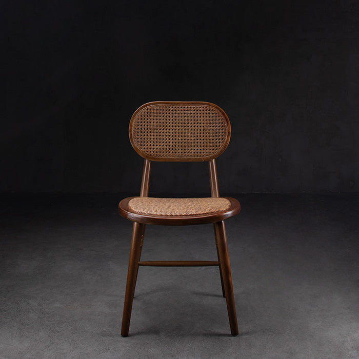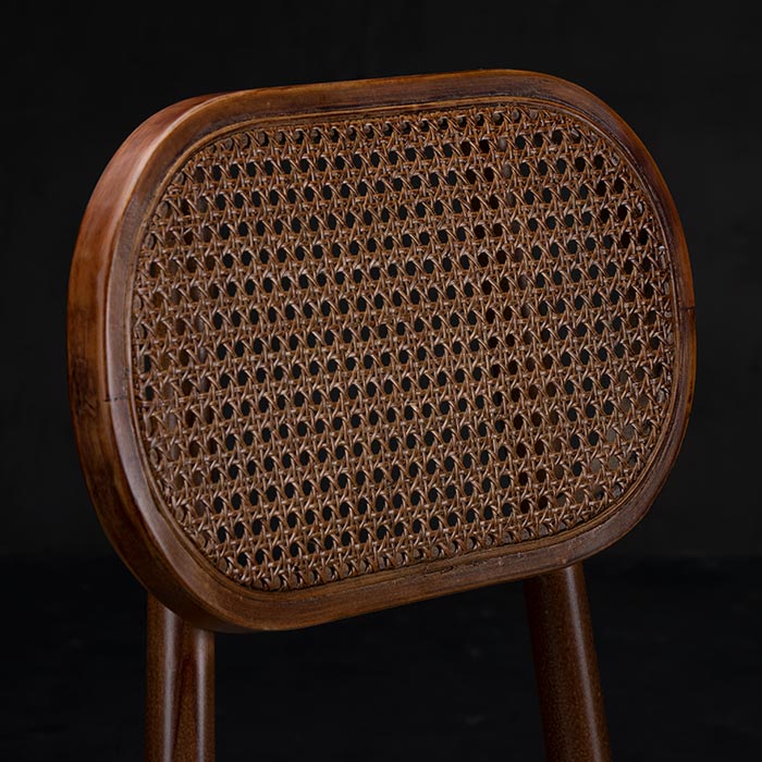Estructura de madera de olmo, asiento y respaldo de madera cubierto con enjuncado de rattan lo que lo hace muy resistente.