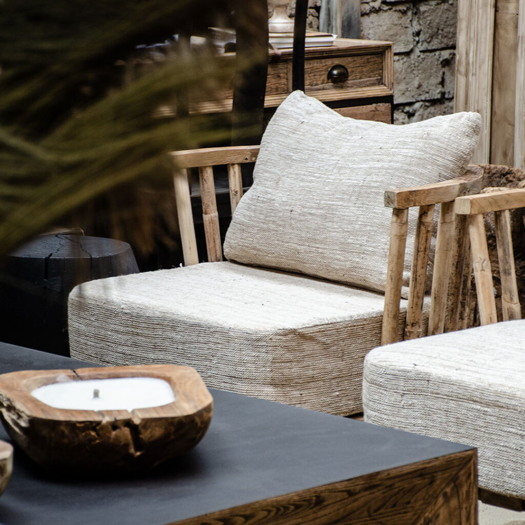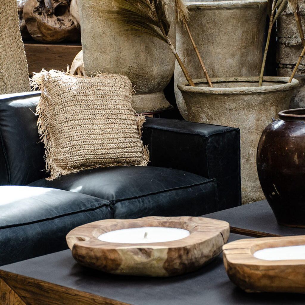 “Conectar en un mismo lenguaje un espacio con mobiliario y objetos que, a simple vista, pudiesen parecer de estilos completamente opuestos. El carácter del cuero y madera en color negro, sumado a la calidez natural y de aires rústicos de las fibras naturales, en textiles, cortinas y hojas, logran un resultado diferente y en total armonía.